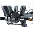 Komfort e-biku zajišťuje bohatá základní výbava s odpruženou vidlicí, kotoučovými brzdami a stabilními 29“ zapletenými koly.