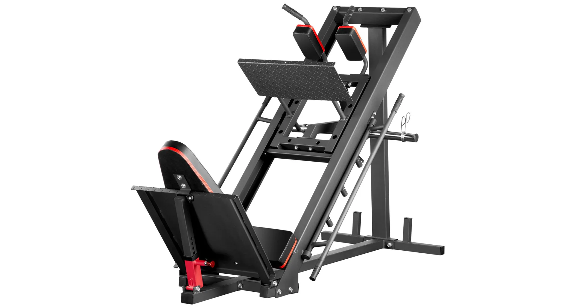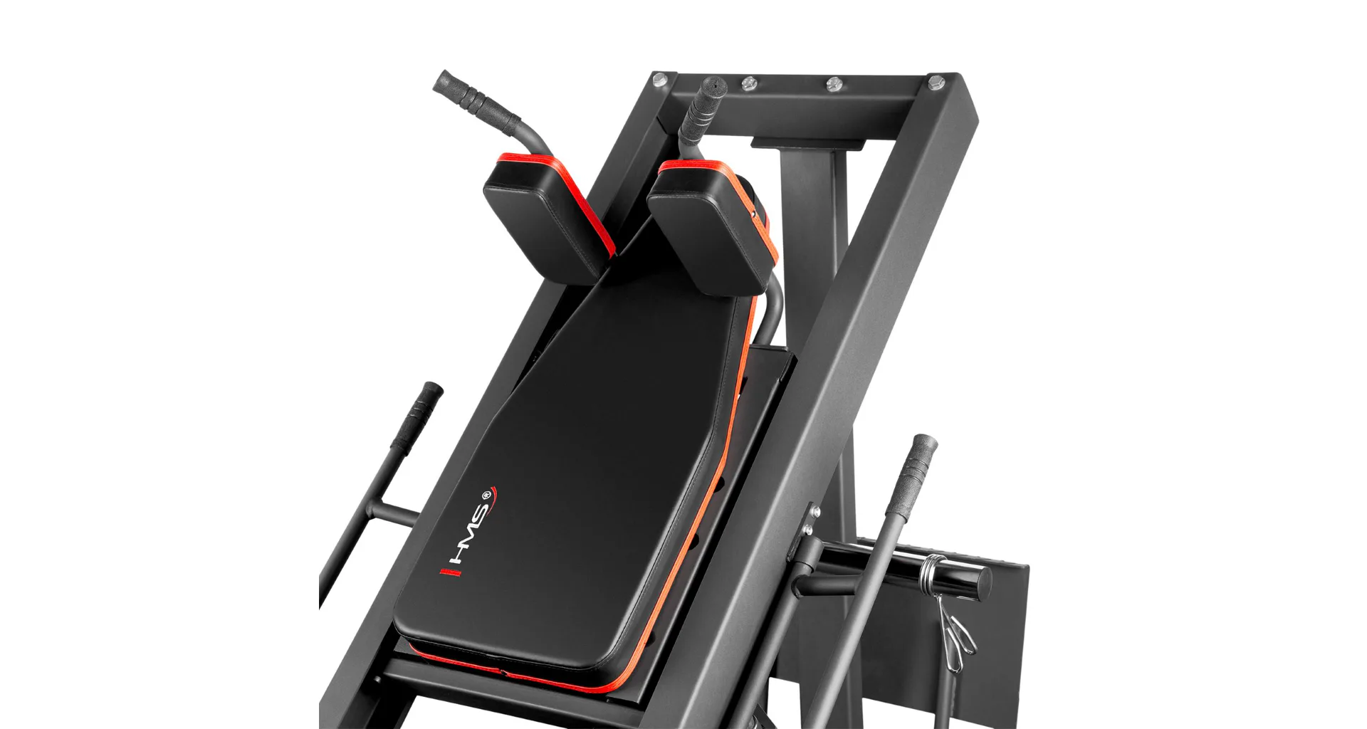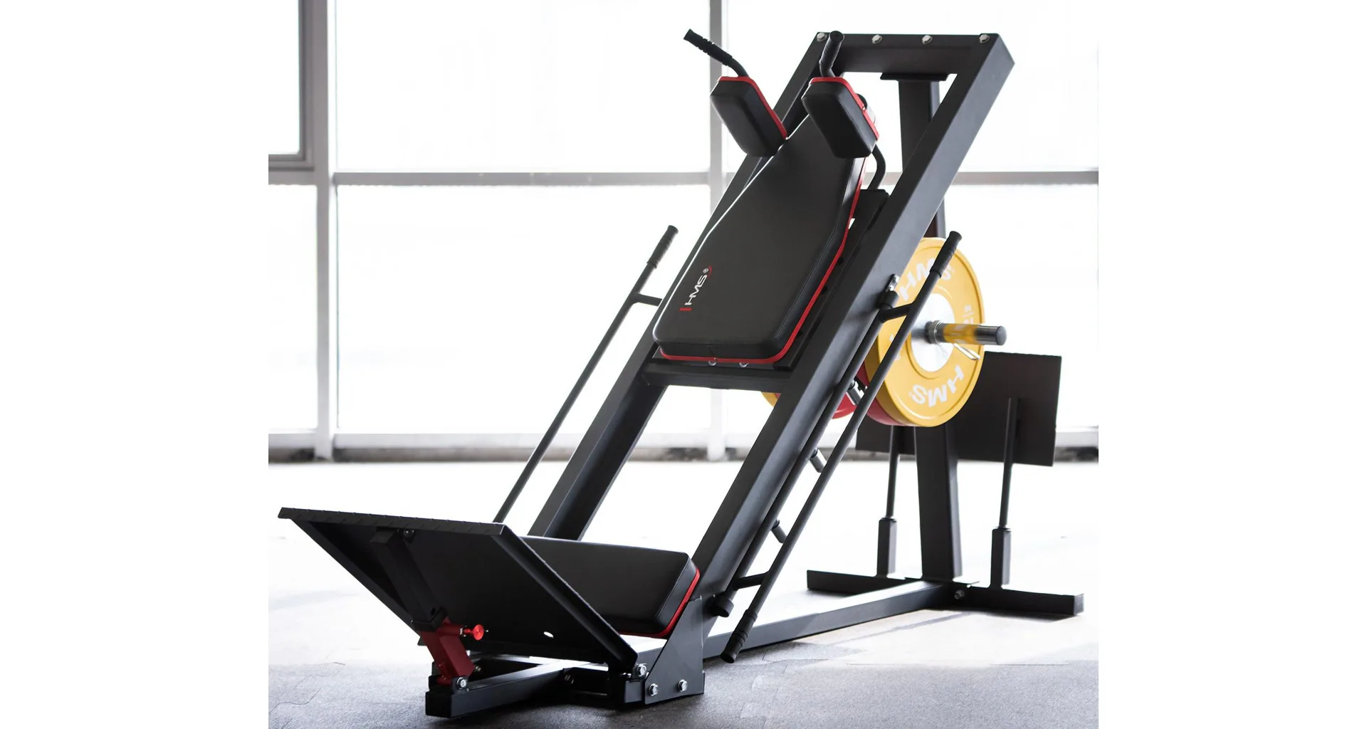 Objevte HMS CM20 - posilovací stroj na nohy 2v1, který je určen pro ty, kteří chtějí zintenzivnit trénink nohou, aniž by se vzdali bezpečnosti a pohodlí. Stroj lze sestavit jako leg-press, nebo hacken dřep a umožňuje tak provádět jak dřepy, tak tlaky, takže se stane vaším partnerem na cestě k dosažení vyšších tréninkových cílů.