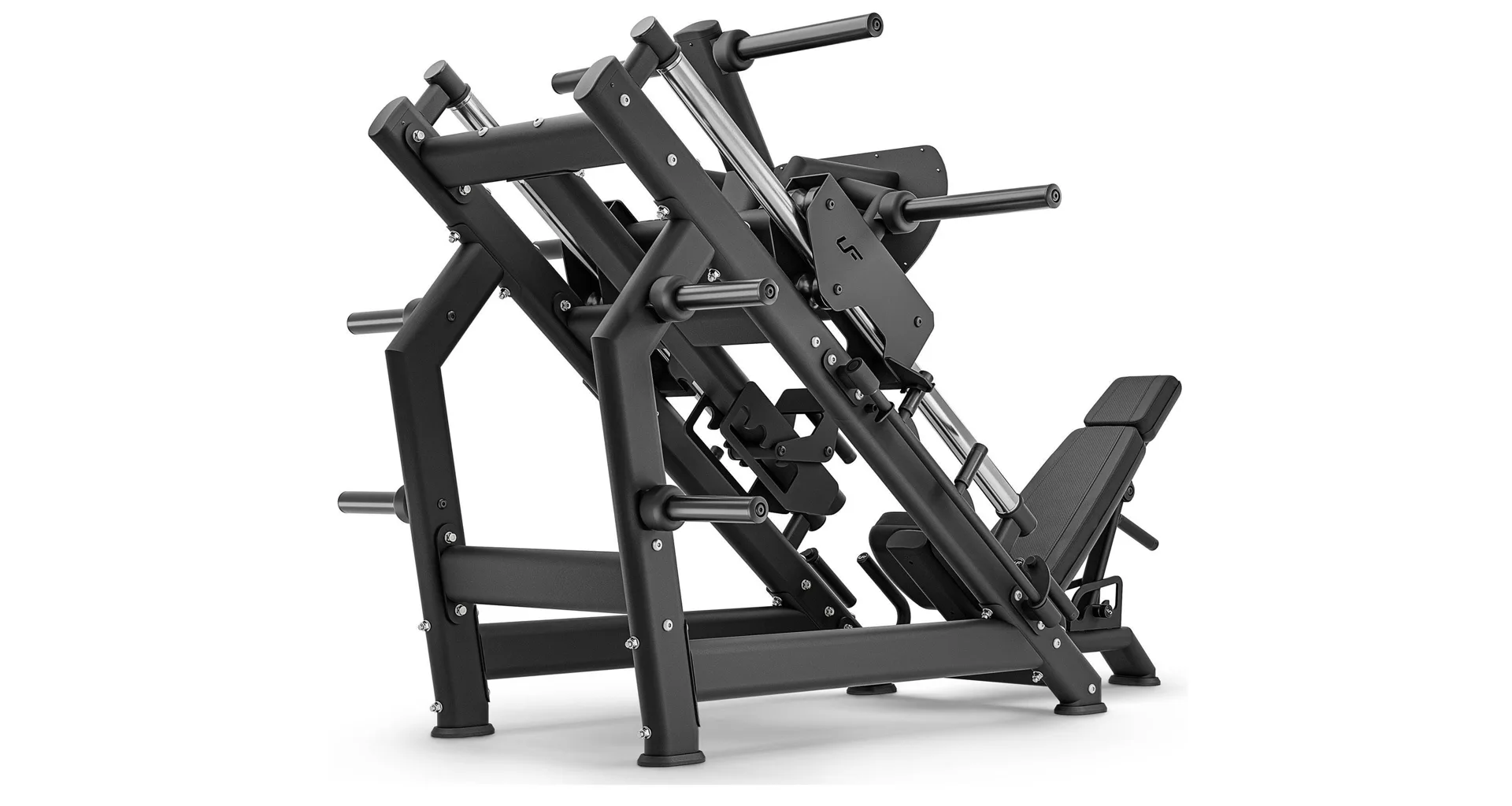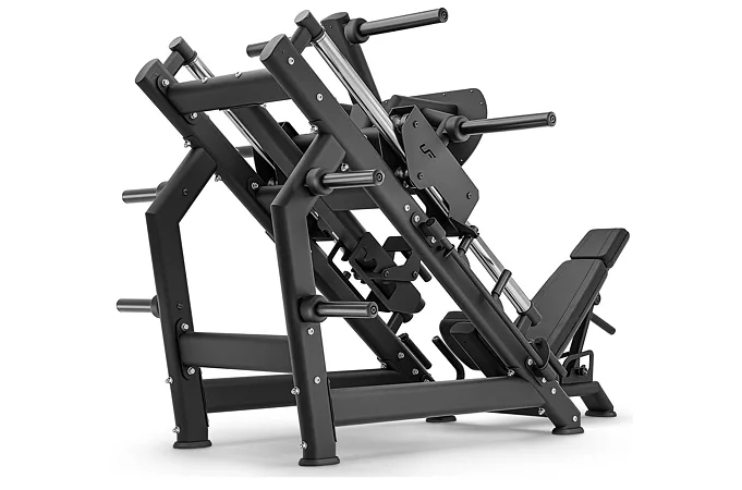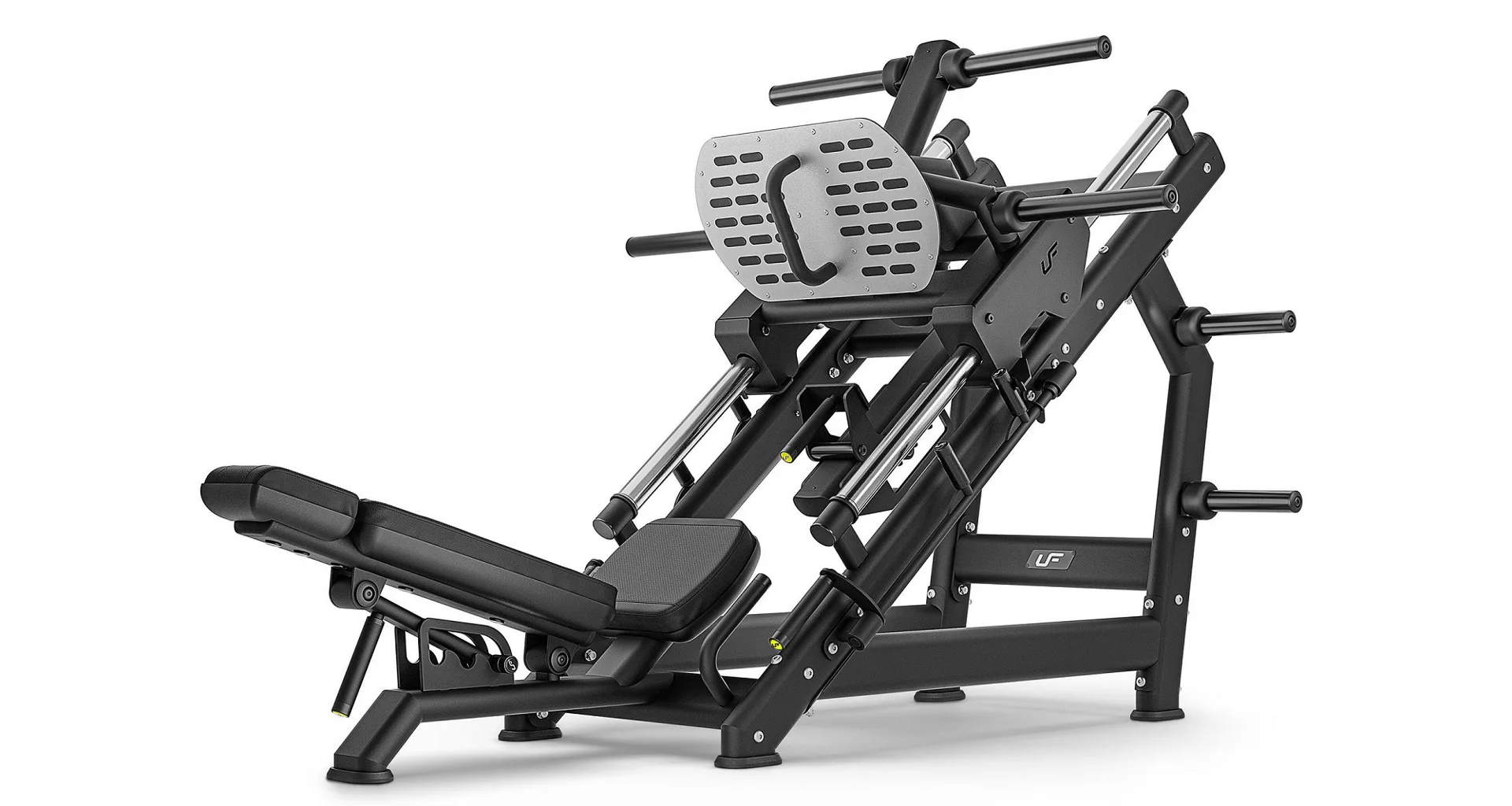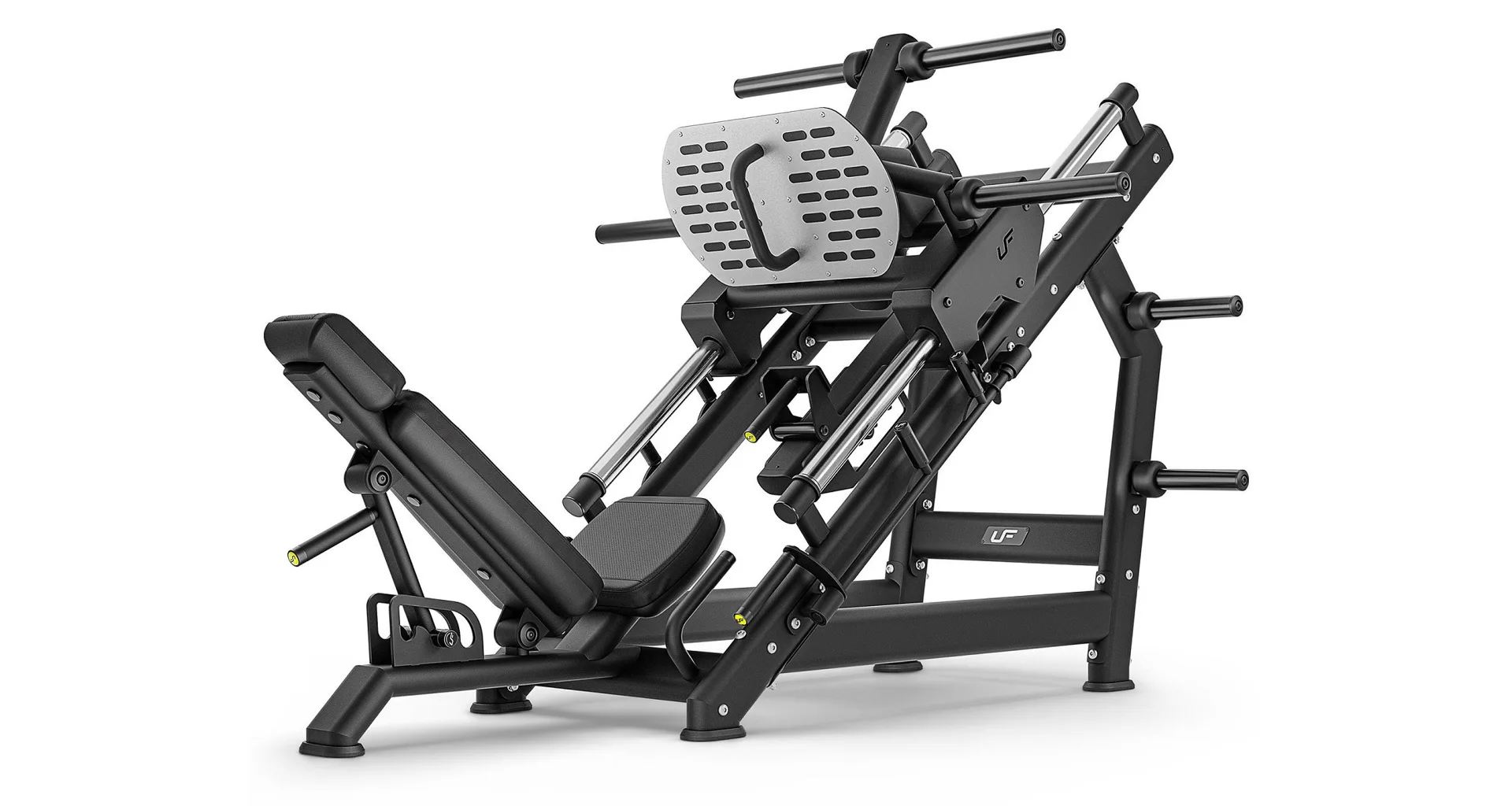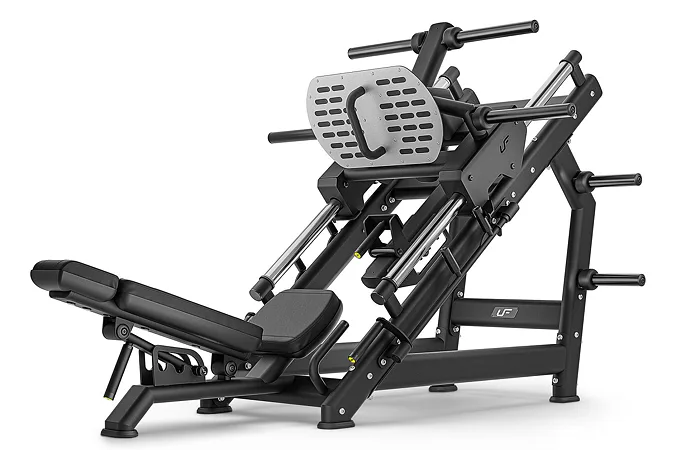Leg press UpForm UR-U001 je robustní zařízení určené pro trénink a posilování stehenních a hýžďových svalů. Základem konstrukce jsou silné oválné profily 125 x 60 mm se stěnou 3 mm, které zaručují pevnost a odolnost celé konstrukce.