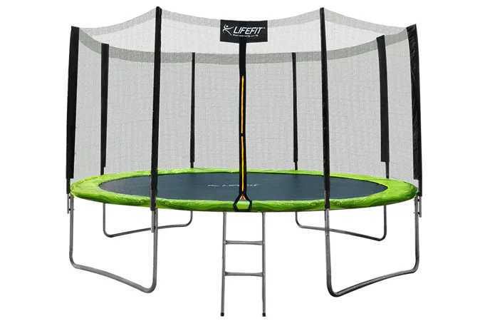 Trampolína LIFEFIT 12' s průměrem skákací plochy 366 cm je výborným pomocníkem pro zajištění zábavy pro děti či dospělé. Je určena pro exteriérové využití k instalaci na zem. Trampolínu lze snadno a rychle smontovat a v případě potřeby lze jednoduše přemístit na jiné místo. Jako materiál na konstrukci byla použita galvanizovaná ocel a materiálem skákací plochy je polypropylen. Ochrannou síť naleznete podél celé trampolíny. Tak máme zaručenu maximální bezpečnost, takže nehrozí žádný úraz z vypadnutí. Na trampolínu se pohodlně dostanete po schůdkách, které jsou součástí balení, stejně jako ochranná síť