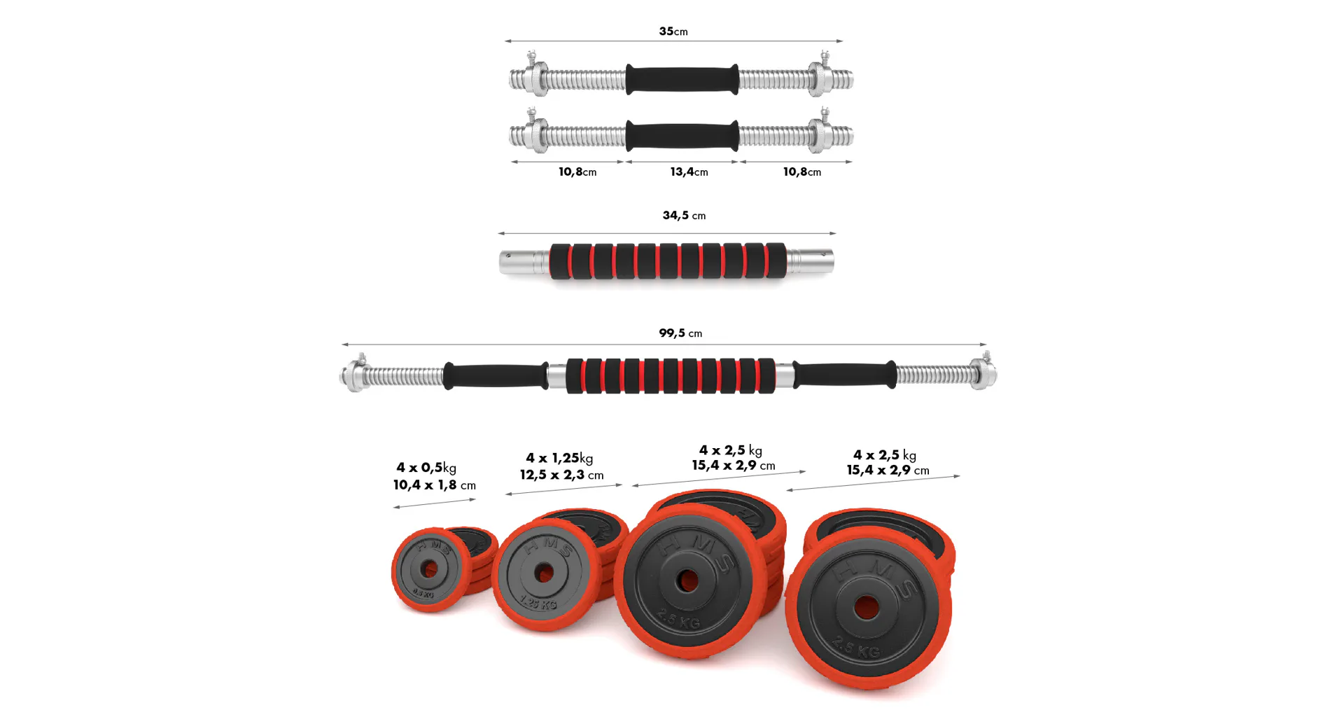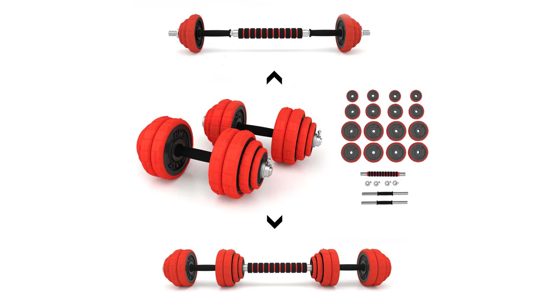 HMS SGGX30 je sada nakládacích jednoručních činek o průměru 25 mm, které jsou nepostradatelnou klasikou každé domácí posilovny. Sada je doplněna o spojovací díl, pomocí kterého můžete nakládací osy spojit a získáte jednu obouruční činku.