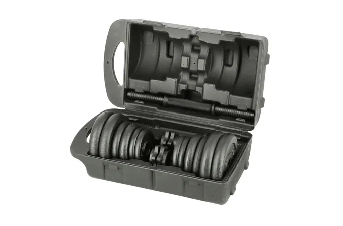 Sada jednoručních činek ONE Fitness STO20 v kufříku. Kufřík obsahuje 2 jednoruční hřídele, sadu kotoučů. 4 kusy matek. Díky balení v plastovém kufříku, lze činky jednoduše přenášet a skladovat.