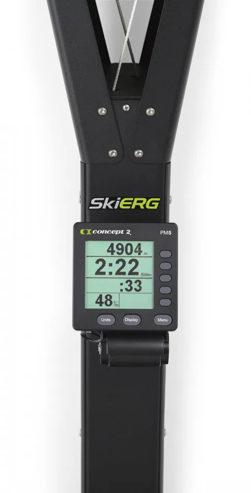 Součástí nejnovějšího modelu lyžařského trenažéru SkiErg je výkonnostní monitor PM5 s podsvíceným displejem. Při každém cvičení tak získáte přesné a porovnatelné údaje, které si můžete uložit do paměti monitoru nebo na jakýkoliv USB flash disk.