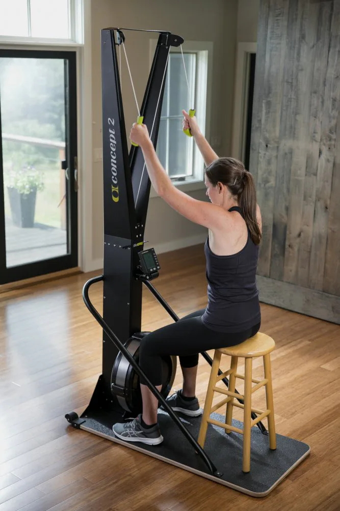 Lyžarský trenažér SkiErg2 je trenažér od firmy Concept2, je to revoluční zařízení, díky kterému si můžete dopřát vydatný lyžařský trénink během celého roku. Lze ho umístit kamkoliv na stěnu jen pomocí čtyř šroubů, klíče a vrtačky. SkiErg je ideální pomocník pro každého, kdo má rád běžkování a intenzivní trénink. Díky tomuto trenažéru můžete celoročně trénovat techniku v lyžování, či budovat kondici a spalovat tuky.
