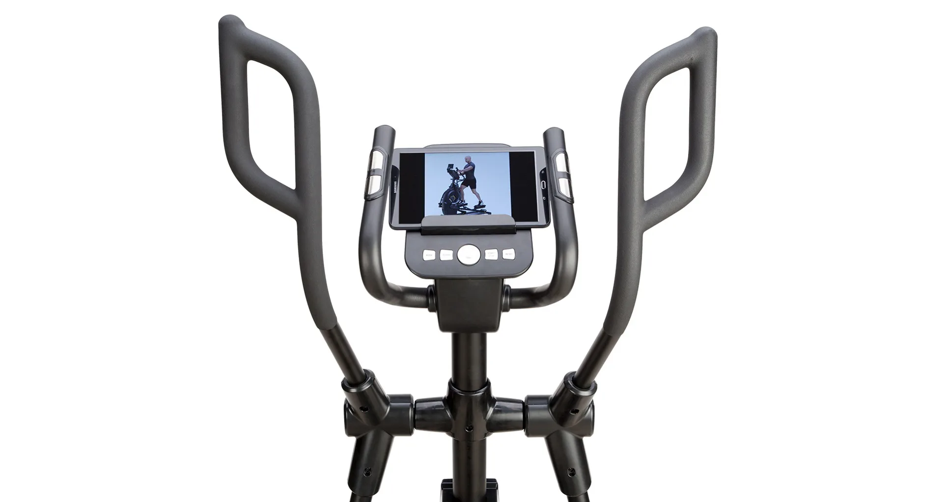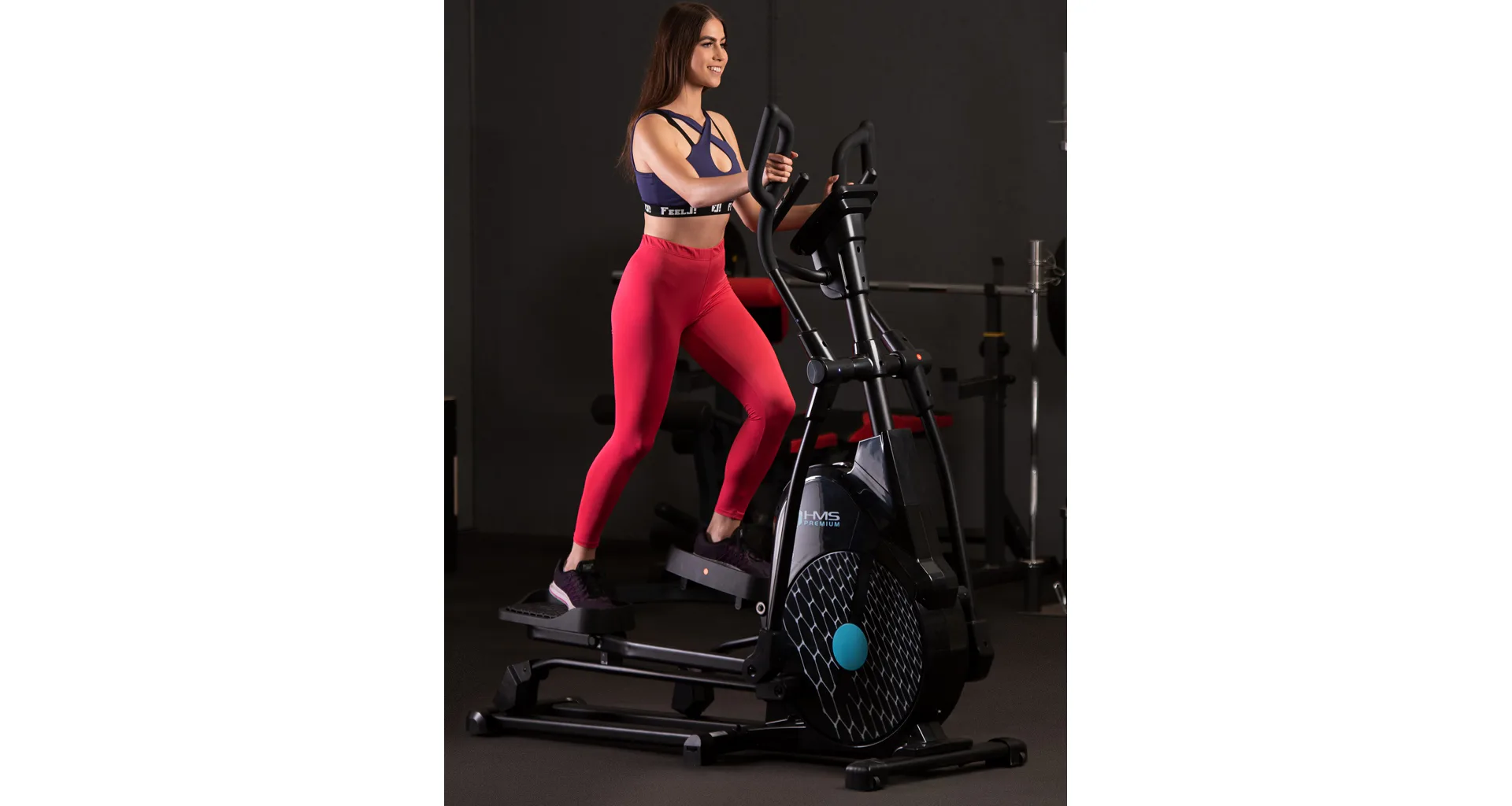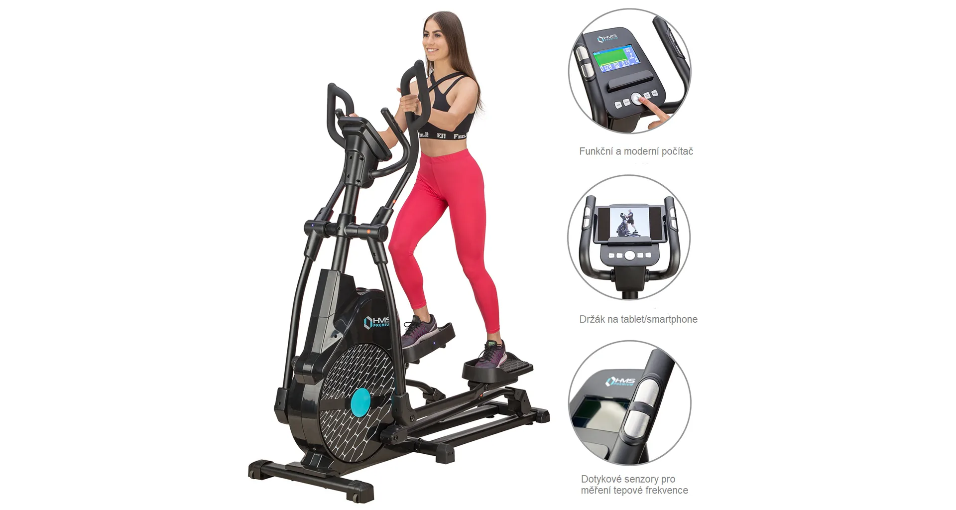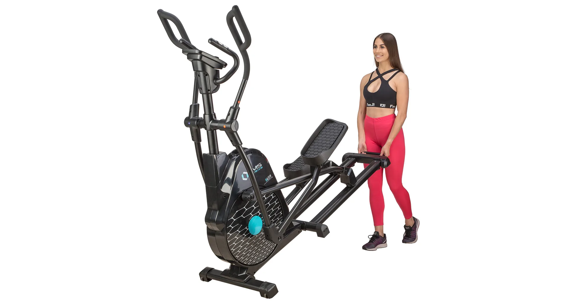 Eliptický trenažér HMS Premium H6319 je určen pro intenzivní trénink v domácích podmínkách. Největší předností modelu je stabilní konstrukce a 7kilogramové zátěžové kolo v kombinaci s tichou magnetickou brzdou. Zátěž modelu H6319 generuje automaticky ovládaná magnetická brzda, která se podle průběhu zvoleného programu vzdaluje, nebo přibližuje k zátěžovému kolu. Systém s magnetickou brzdou je bezúdržbový, tichý a umožňuje přesné přizpůsobení zátěže aktuálním potřebám, nebo požadavkům. Trenažér H6319 je vybaven moderním počítačem s přehledným LCD displejem, který zobrazuje všechny údaje na jednom panelu bez potřeby jejich přepínání. Jednotlivá pole zobrazují počet otáček za minutu, čas tréninku, tepovou frekvenci, vzdálenost, spálené kalorie a rychlost. Na klávesnici se nacházejí 4 tlačítka funkcí a otočný přepínač s potvrzovacím středem.Technické parametry: