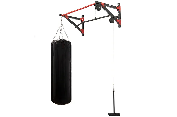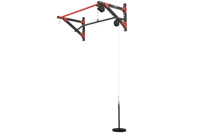 Horní kladka je tvořena ocelovým lankem, které má na obou koncích karabinu. Na jednom konci je zavěšen trn pro nakládání zátěže v podobě vzpěračských kotoučů, tento trn má průměr 22 mm a délku 46 cm. Na druhé straně lana je zavěšený široký adaptér s délkou 120 cm, který je pro lepší komfort osazen gumovými gripy. Oko pro zavěšení boxovacího pytle je vzdáleno 69 cm od zdi. Kladky jsou vyrobeny z pevnostního plastu osazeny kuličkovými ložisky.