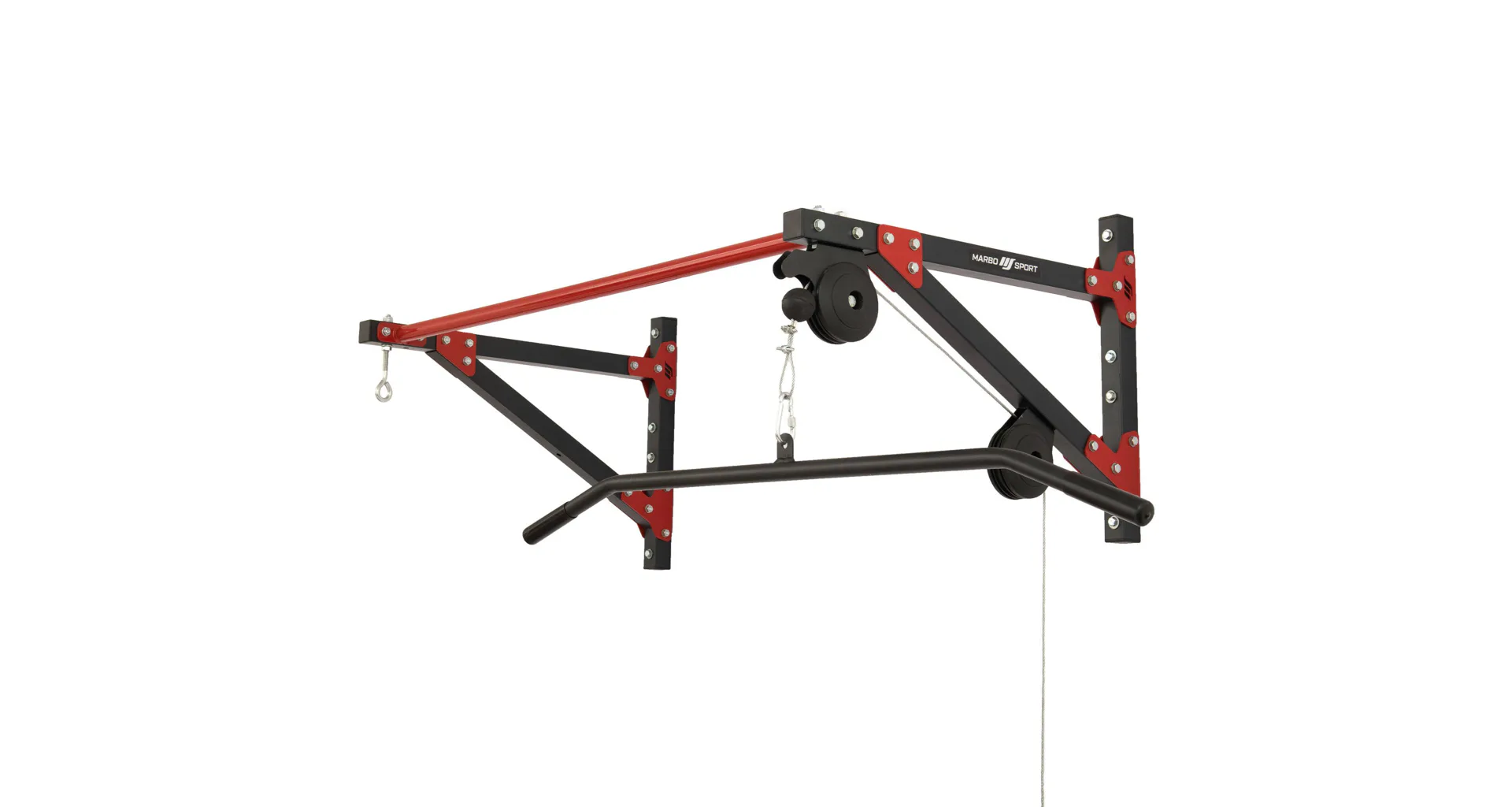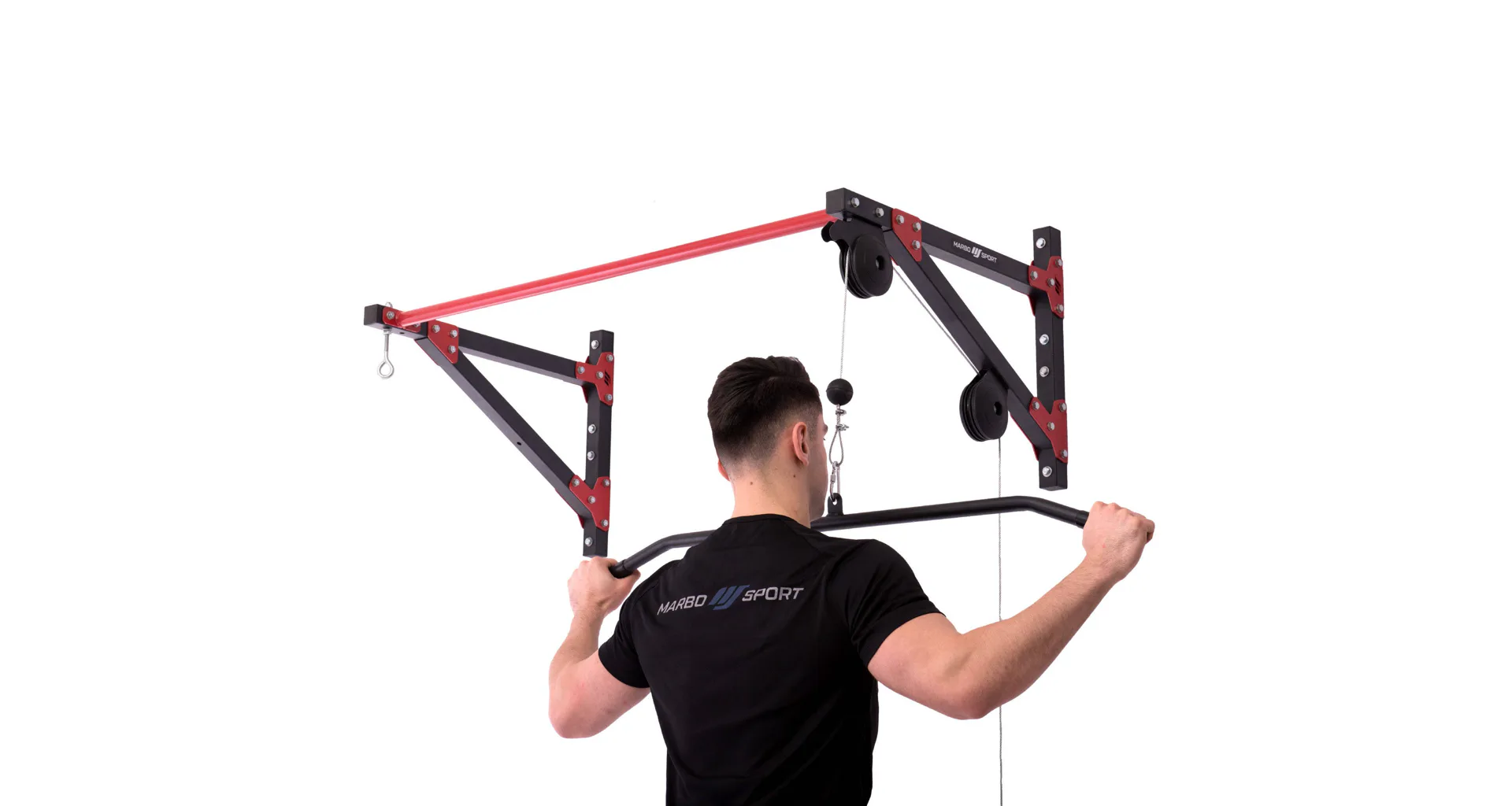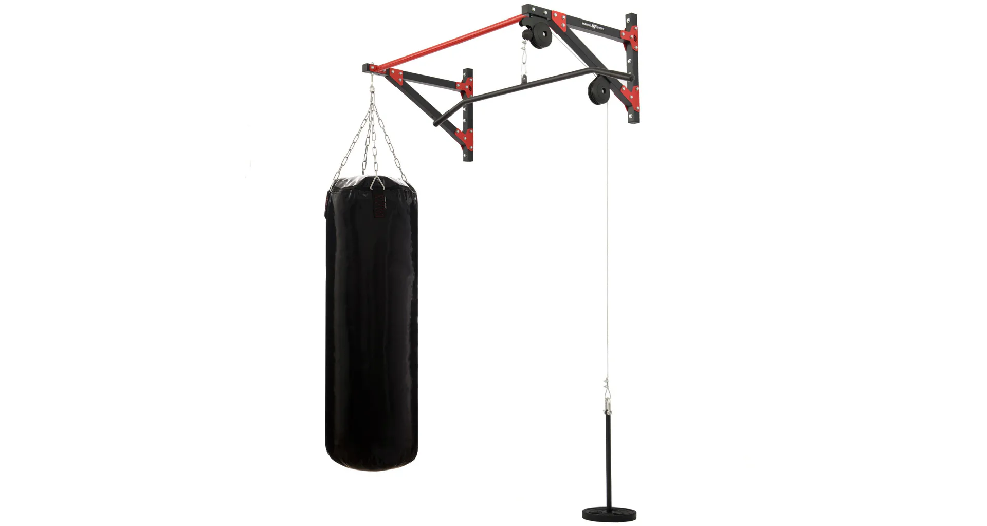 Variabilní produkt MARBO Sport MH-D204, který v sobě kombinuje hrazdu, vrchní kladku a držák boxovacího pytle (pytel není součást balení), je vyroben z ocelového profilu 40 x 40 mm, díky kterému má nosnost až 150 kilogramů.