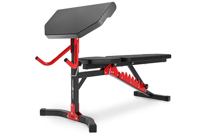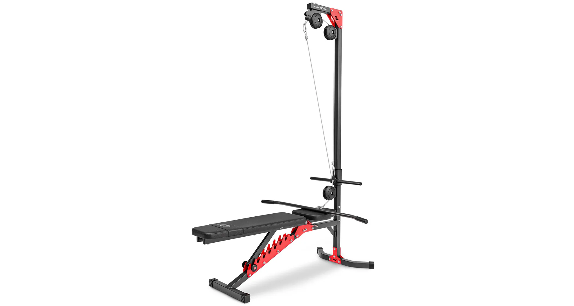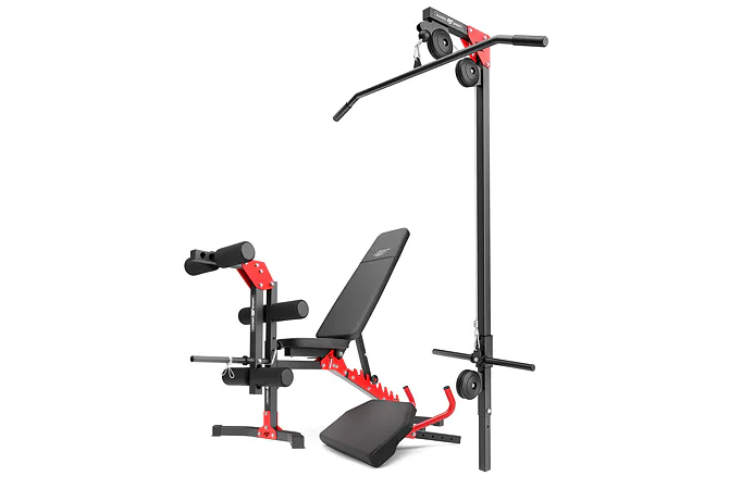 Multifunkční, posilovací lavice MARBO MH-KBH-115 s kopačem, bicepsovou opěrkou a horní i spodní kladkou je univerzální pomocníkem pro domácí cvičení. Lavice má tvarovanou opěrku pro lepší ergonomii a vyšší komfort během tréninku. Součástí lavice je bicepsová opěrka a kopač.