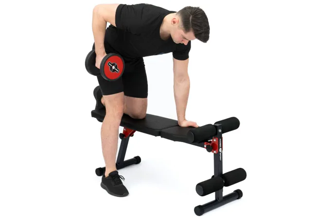 Skládací, posilovací lavice MARBO MH-L104 2.0 je inovovaným modelem oblíbené lavice MH-L104. Vyslyšely jsme připomínky našich zákazníku a inovovaný model má výše umístěnou horní podpěru pro lepší ergonomii a delší opěrku pro vyšší komfort během tréninku. Po funkční stránce jsme zjednodušili systém skládání a stabilizátory jsme opatřily většími, gumovými návleky pro ještě vetší ochranu podlahy před poškozením.