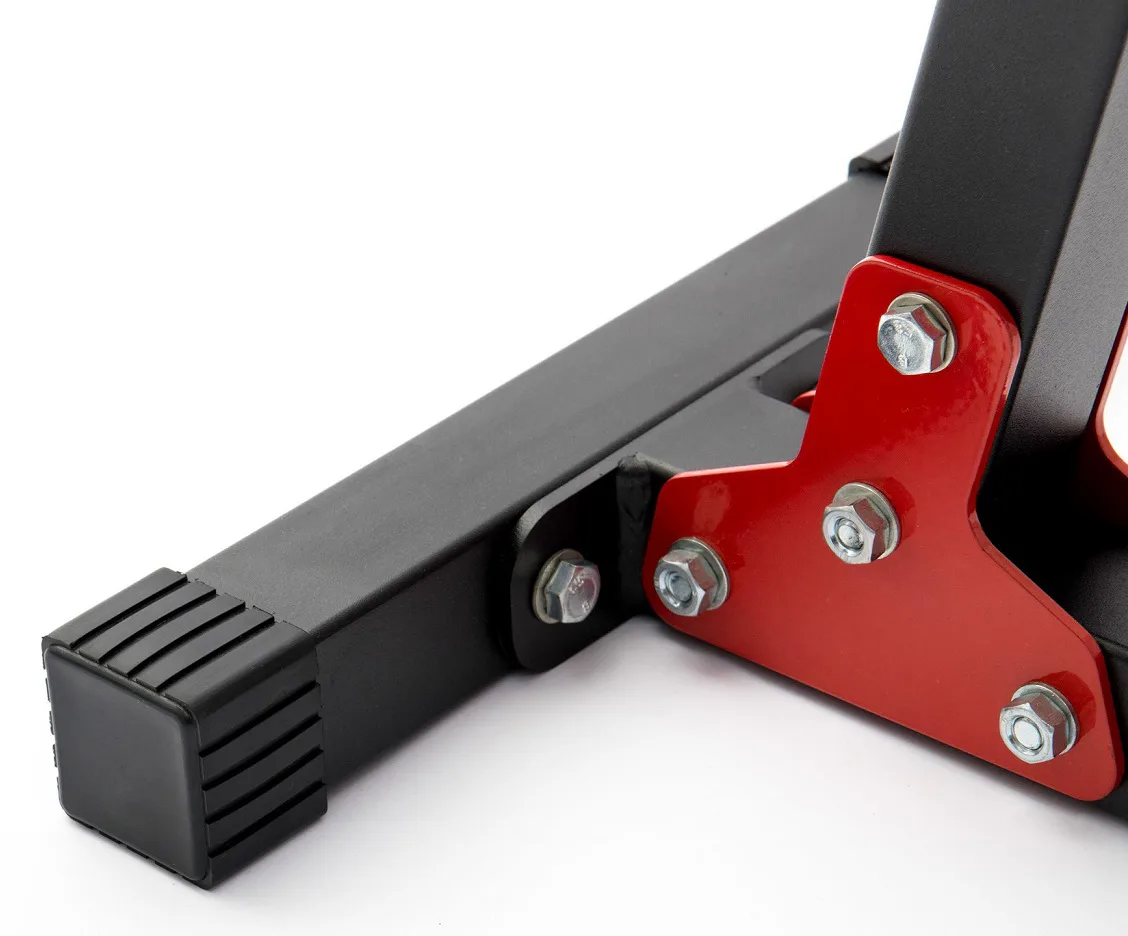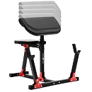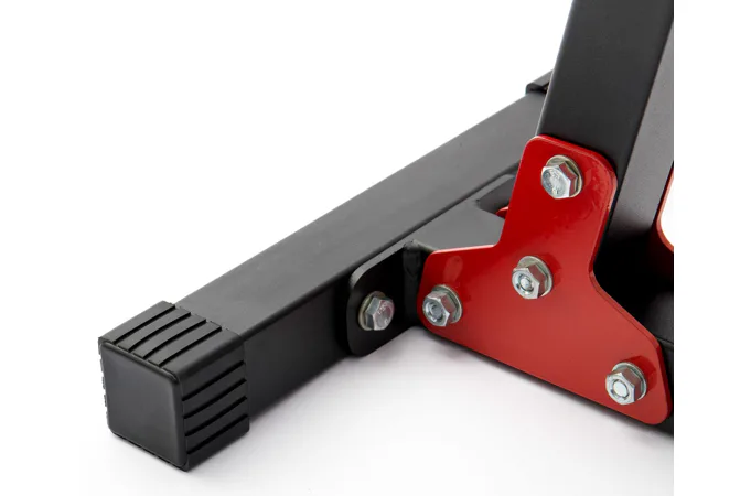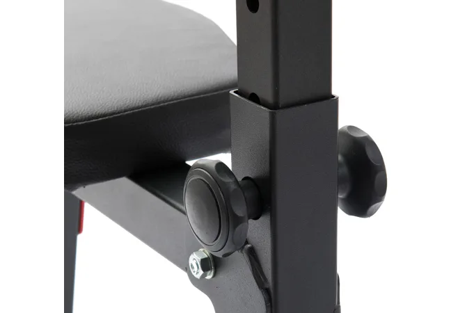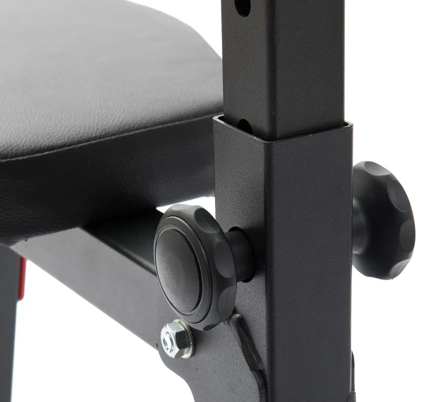 Výšku opěry lze nastavit v 5 úrovních v rozmezí od 82 do 102 cm. a dokážete si ji tak perfektně přizpůsobit své výšce. Regulace se provádí pomocí šroubů s plastovým, ergonomickým úchytem. Háky pro odložení činky jsou opatřeny hrubou gumou, která chrání jak činku, tak konstrukci před poškrábáním.