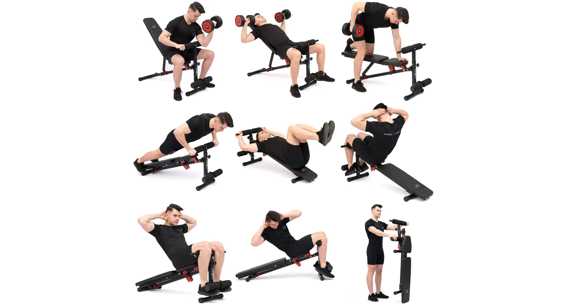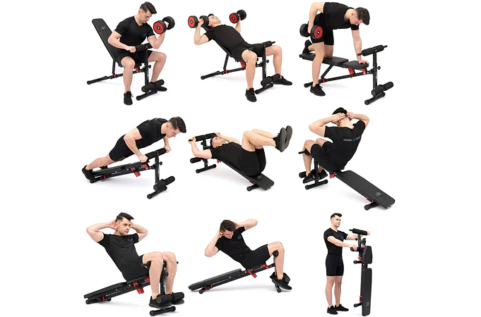 Variabilní posilovací lavice umožňuje trénovat svaly břicha, zad, ramen, nohou nebo paží.
