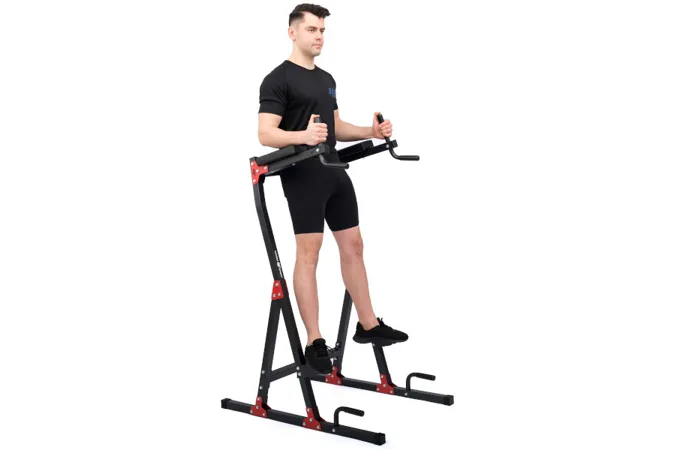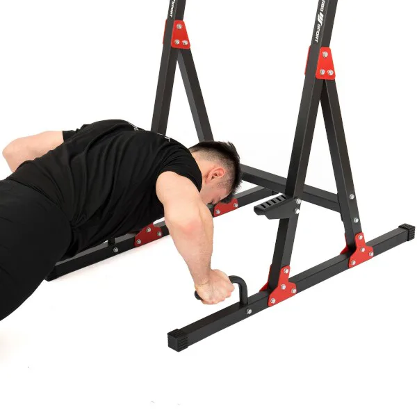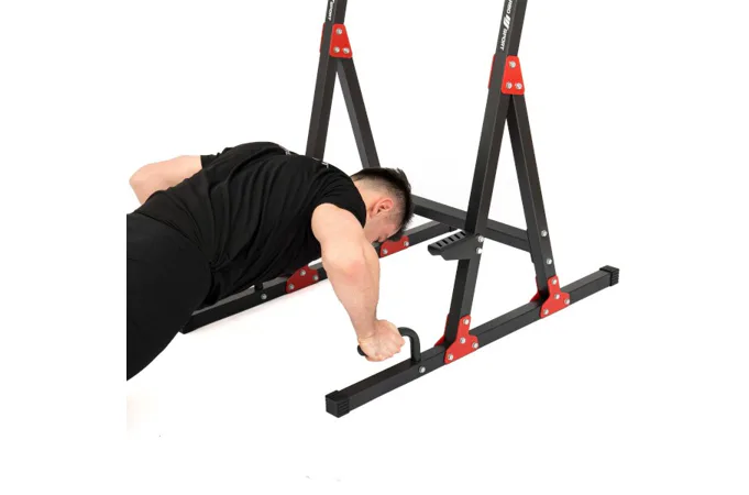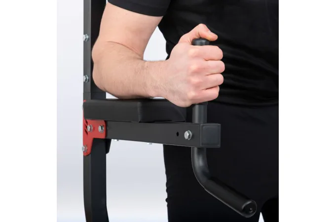 Stacionární stojan s bradly MARBO Sport MH-U101 2.0 je vyroben z ocelového profilu 40 x 40 x 2 milimetry a díky tomu je jeho nosnost až 120 kilogramů. Oproti svému předchůdci má model MH-U101 2.0. výšku 160 centimetrů a pro vyšší stabilitu je základna prodloužena o 10 centimetrů na délku 107 centimetrů. Jednotlivé díly jsou vyrobeny na precizních, programovatelných CNC strojích, tento výrobní proces je zárukou bezproblémové montáže.Pohodlné polstrování je opatřeno sytetickou kůží. Loketní opěrky jsou doplněny madly, která se dají nastavit do vzdálenosti 43, nebo 47 centimetrů. Bradla MH-U101 2.0 umožňují trénink předkopávání, dipů a kliků. Pravidelným cvičením tedy posilujete svaly břicha, ramen a paží. Pokud jste menšího vzrůstu, tak jistě oceníte ocelové stupačky, které usnadňují pohodlné dosažení pracovní pozice.