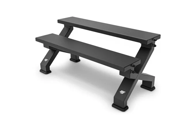 Profesionální stojan na kettlebelly MARBO MP-S210 2.0 je jedním ze základních prvků každé posilovny, který šetří místo, pomáha udržovat pořádek a zlepšuje přehlednost. Konstrukce je vyrobena z ocelového profilu 100 x 50 x 3 mm, díky kterému je nosnost stojanu až 300 kilogramů. Kapacita stojanu je nejčastěji (záleží na rozměrech jednotlivých kettlebellů) 12 kusů kettlebellů v rozsahu od 6-ti do 32 kilogramů. Rozměr jedné police je 21 x 108 centimetrů. Nohy stojanu jsou osazeny gumovými koncovkami, které chrání podlahu před poškozením a zároveň zvyšují stabilitu stojanu.
