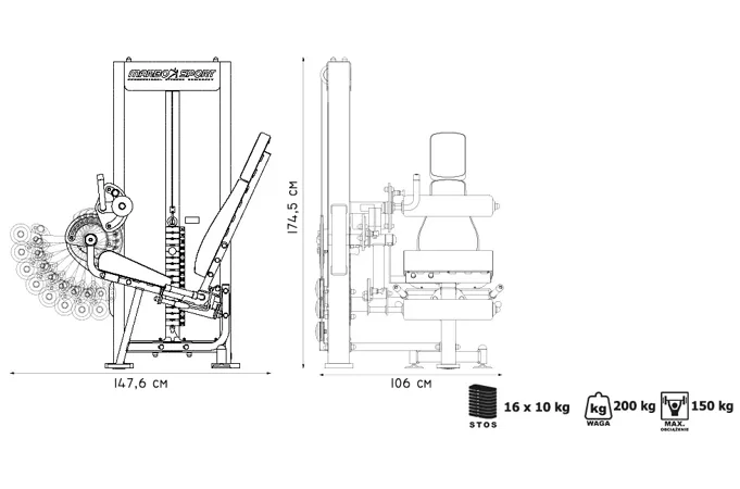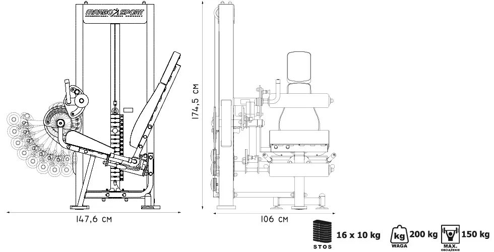 Předkopávání a zakopávání Marbo MP-U216 je profesionální vybavení pro vaši posilovnu. Pro výrobu byly zvoleny ocelové profily 120 x 60 x 3 mm a 80 x 40 x 3 mm, které zaručují nečekanou trvanlivost. Zátěž tvoří 16 ks 10kg cihel. Celková váha závaží dodávána se strojem je tedy 160 kg. Stroj disponuje širokou variabilitou nastavení. Hlavni rameno je polohovatelné v 12 stupních, spodní válec v 8 stupních, horní válec v 5 stupních a opěradlo má 4 polohy. Opěradlo je navíc podepřeno plynovým pístem, takže pro změnu polohy stačí stisknout páku a posunout se. Napínaní lanek se provádí regulací 4 šroubů na hlavním vodícím kole. Odpadá tak složité rozebírání stroje.