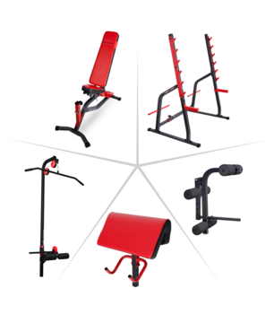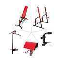 K lavici lze přikoupit i adaptéry: předkopávání MS-A102, motlitebník MS-A101, kladka MS-W002, zaráźka nohou MS-A003 a stojany pod velkou činku..