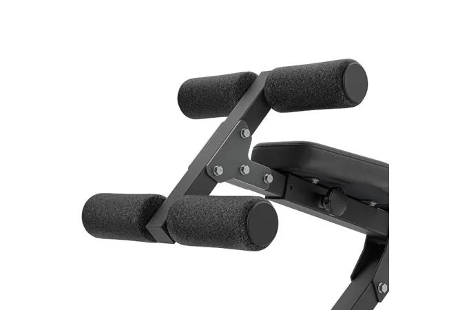 Zarážky nohou jsou opatřeny pohodlnými válečky z EVA pěny. Modul zarážek lze nastavit do 4 úrovní pomocí pružinového čepu. Lavice MS-L110 2.0 je primárně určena k tréninku břišních svalů, ale díky nosnosti až 250 kilogramů ji lze použít také k tréninku s velkou činkou - v tomto případě se vyjme modul se zarážkami a lavice se nastaví do vodorovné pozice.