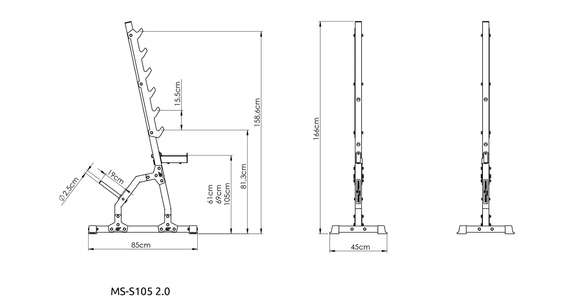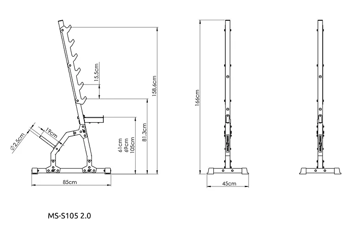 Gumové nožky na spodní straně stojanů zabraňují poškrábání podlahy a zajišťují stabilitu během cvičení. Stojany MS-S105 2.0 jsou ideální volbou pro domácí posilovnu, kde poskytnou bezpečné a efektivní podmínky pro trénink s dlouhou osou.