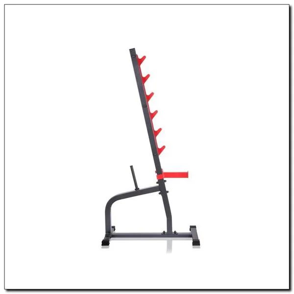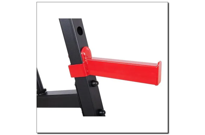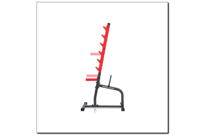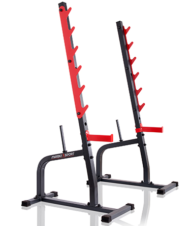 Stojany na dřepy MARBO MS-S105 jsou vyrobeny z oceli nejvyšší kvality, která zajišťuje bezpečné zatížení až 300 kg.Tyto stojany jsou ideální volbou pro ty, kteří hledají trvanlivé a cenově dostupné stojany.Tyto stojany můžou být použité samostatně nebo jako externí stojany během cvičení na lavici. Promyšlená konstrukce MARBO MS-S105 zajišťuje stabilitu a bezpečnost při tréninku a to i díky trnúm na závaží.Toto řešení umožňuje nejen udržovat pořádek v posilovně,ale taky mít další závaží hned po ruce!!Trny na závaží mají rozměr 22cm x 25mm.