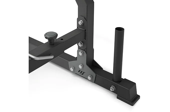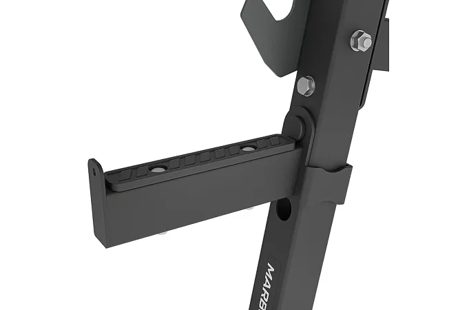 Při cvičení s činkou je bezpečnost na prvním místě. Bezpečnostní podpěry ji zvyšují, zejména při cvicích na ramena nebo při dřepech s činkou. Zarážky si můžete nastavit do takové výšky, která vám nejlépe vyhovuje podle vašich tréninkových potřeb a úrovně pokročilosti. K dispozici jsou 3 výškové úrovně.