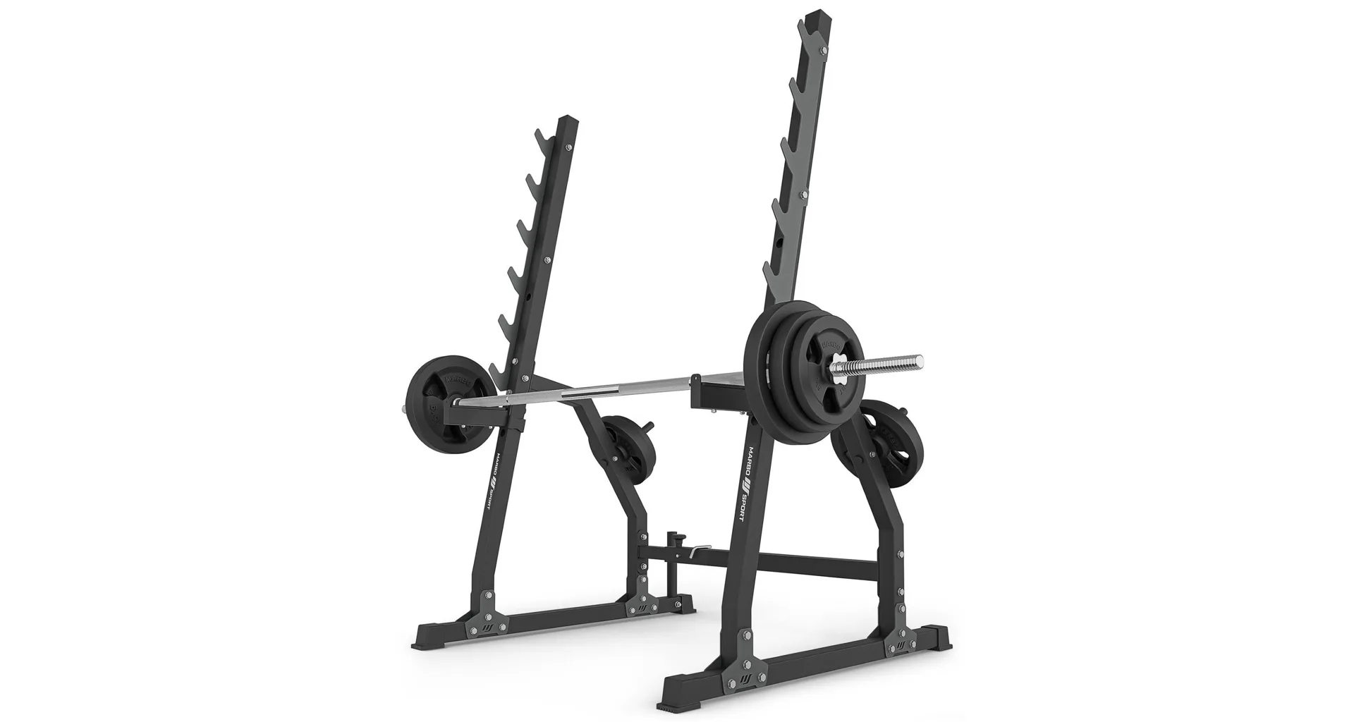 Stojany se zarážkami a nastavitelnou roztečí MS-S107 2.0 od Marbo Sport jsou skvělým doplňkem ve vybavení posilovny. Díky stabilní a funkční konstrukci je trénink s činkou pohodlný. Získáte také spolehlivé jištění, což činí trénink zcela bezpečným.