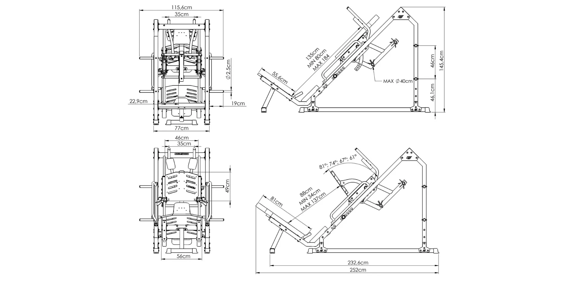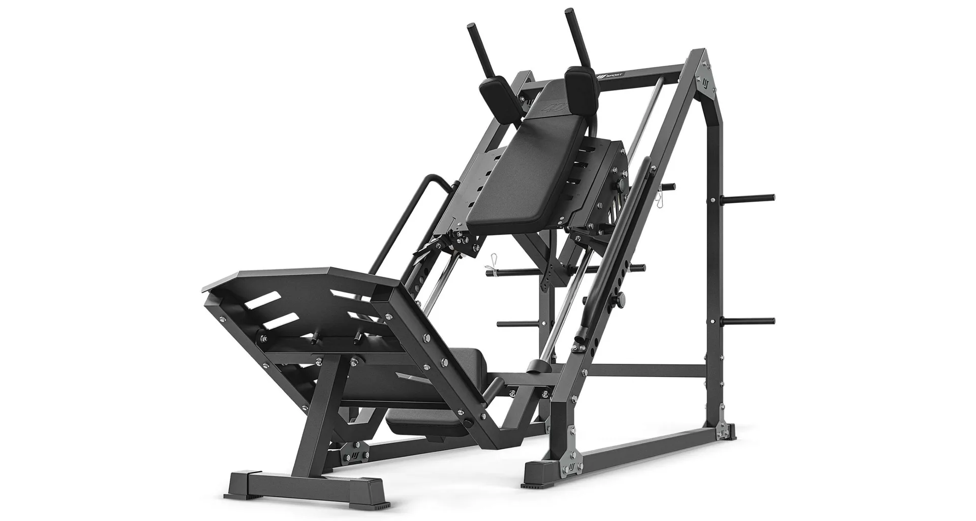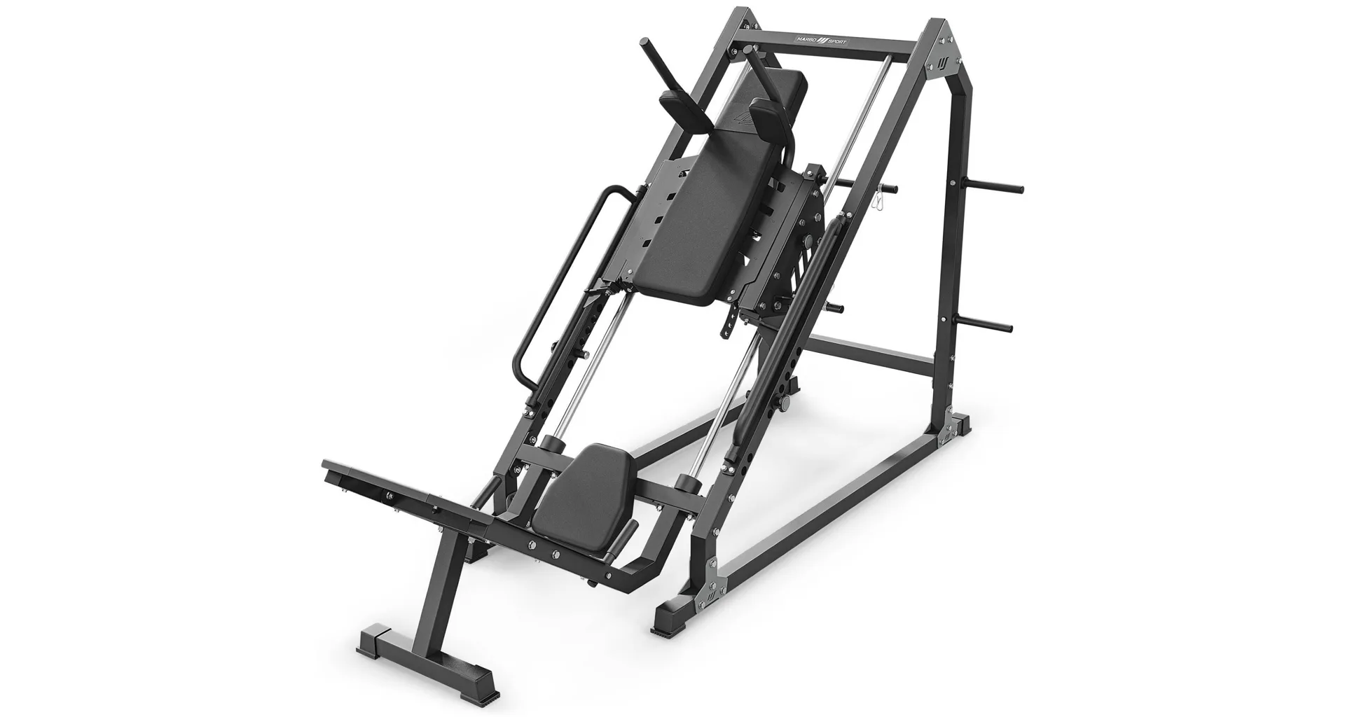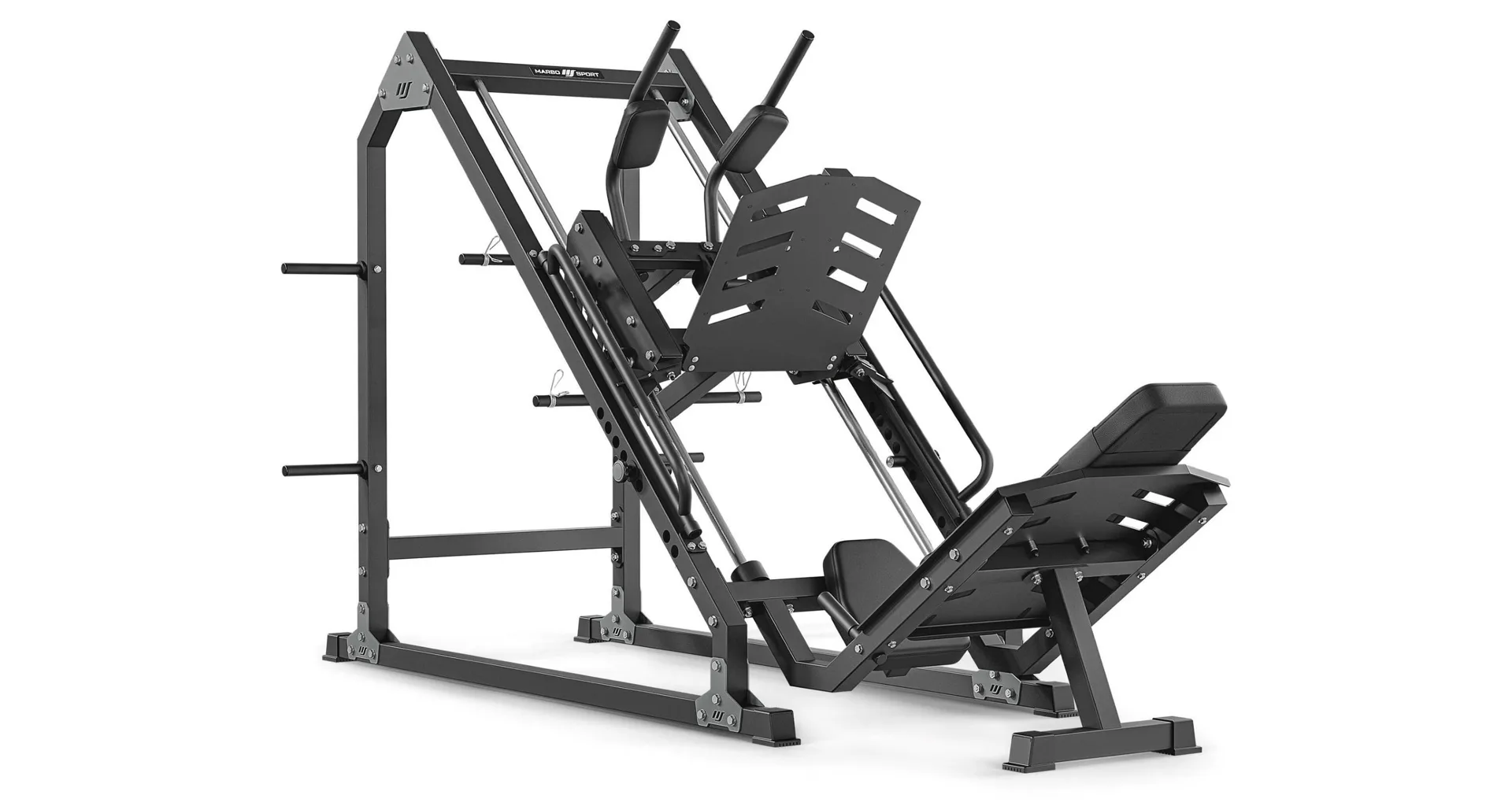Multifunkční stroj MARBO MS-U106 2.0 pojí dva nejznámější stroje zaměřené na budování svalů dolních končetin, a to LEG PRESS + HACKEN DŘEP. Díky důmyslné konstrukci tak můžete využívat dva zásadní cviky na jednom stroji s velkou úsporou prostoru.