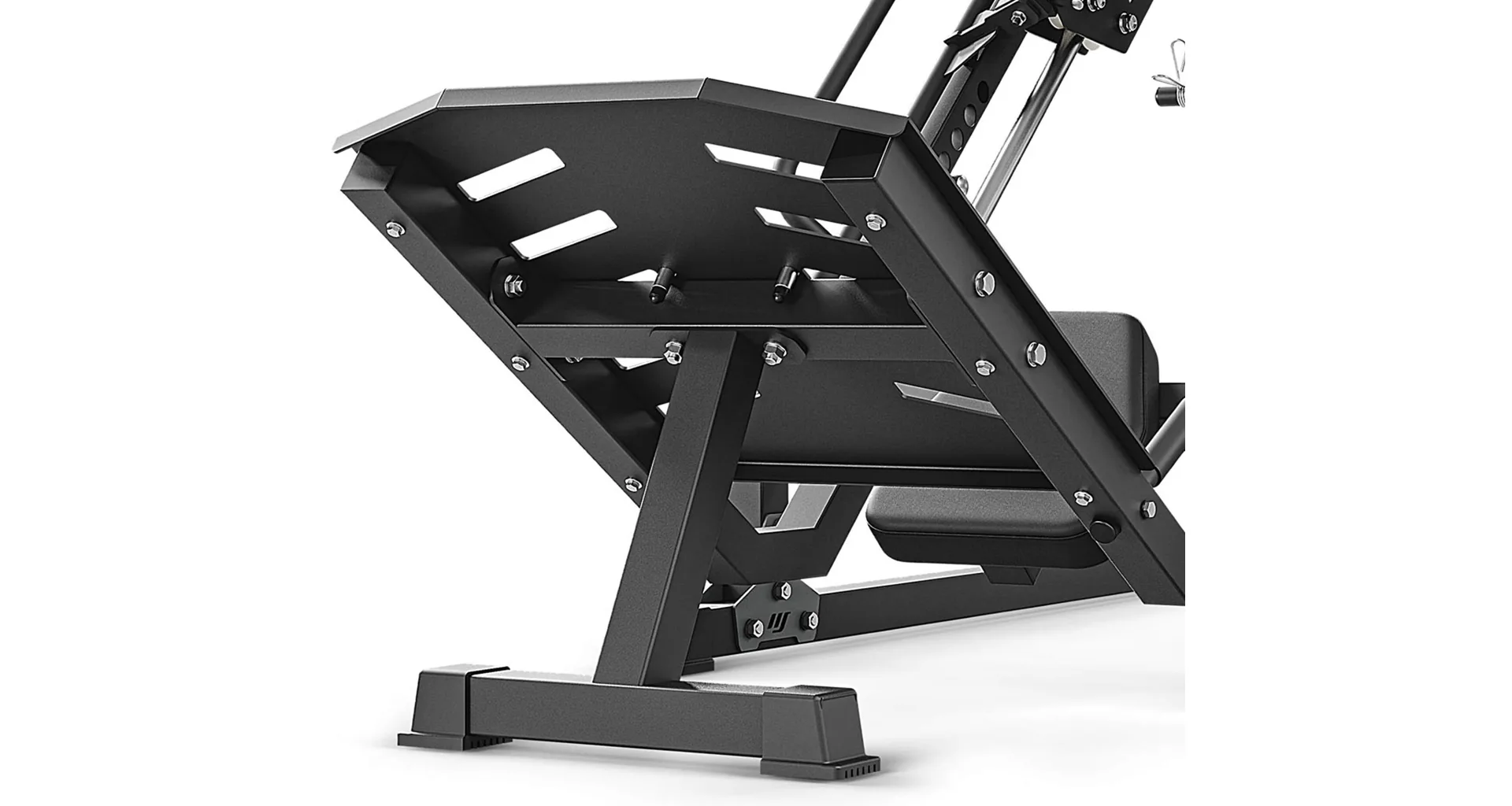 Zesílené čalounění o tloušťce 5 cm s optimální tuhostí zajišťuje pohodlný trénink bez bolesti zad i při tréninku s těžkými váhami. Díky možnosti nastavení sklonu budete moct individuálně nastavit různé polohy platformy, což vám umožní efektivně odtrénovat kteroukoliv část stehen.