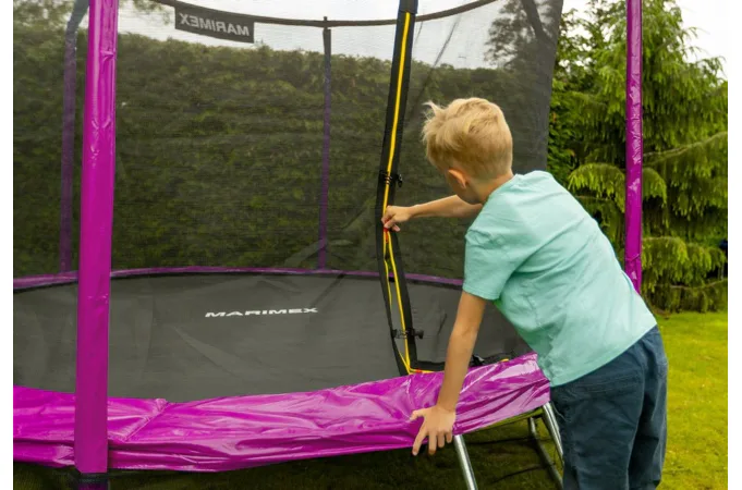 Vnitřní ochranná síť je součástí balení a není třeba ji dokupovat zvlášť. Vnitřní ochranná síť je bezpečnější než vnější síť - brání přístupu skákajícího do části s pružinami. Vstupní prostor je zajištěn třemi přezkami a brání vypadnutí. Tyče jsou obaleny ochranným návlekem z měkčené pěny.