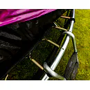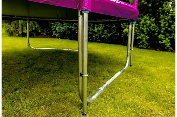 Nohy trampolíny jsou samostatné a zvyšují stabilitu celé trampolíny. Spojení tyčí nohou trampolíny a sítě je jištěno speciálními sponami.