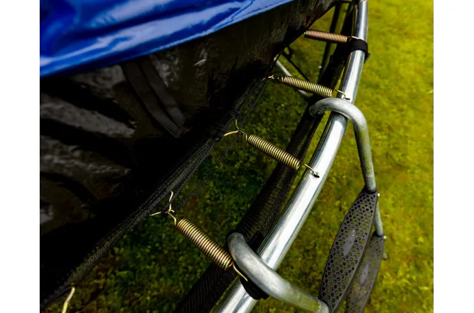 Nohy trampolíny jsou samostatné a zvyšují stabilitu celé trampolíny. Spojení tyčí nohou trampolíny a sítě je jištěno speciálními sponami.