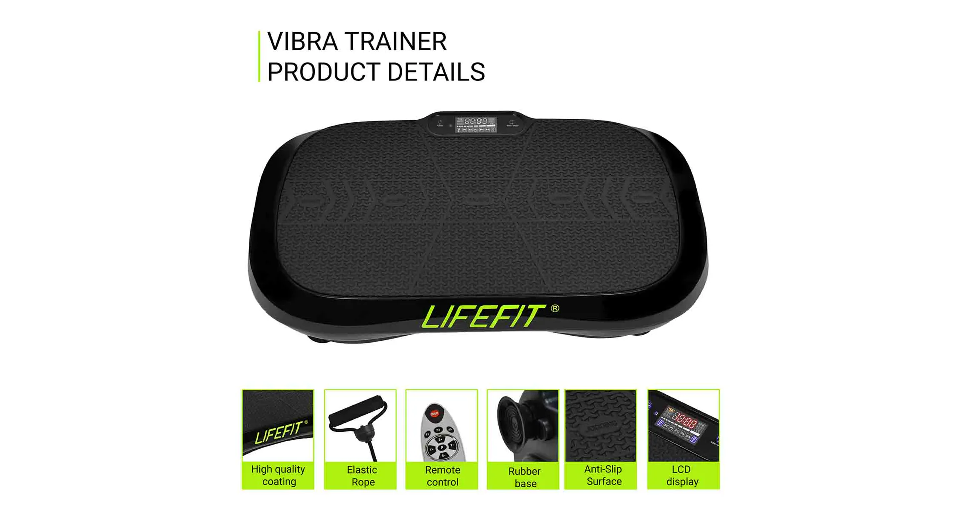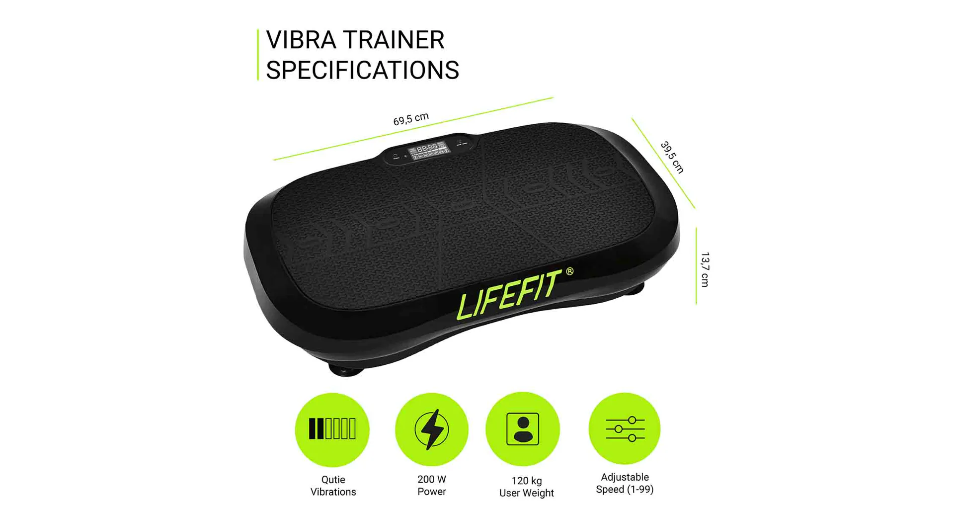 LIFEFIT VIBRA TRAINER efektivně odbourává přebytečné tuky, tvaruje postavu a uvolňuje unavené svalstvo, jedná se tak o ideální trenažér pro zpevnění postavy do domácího prostředí. V balení vibrační plošiny najdete dálkový ovladač a přídavné expandéry.