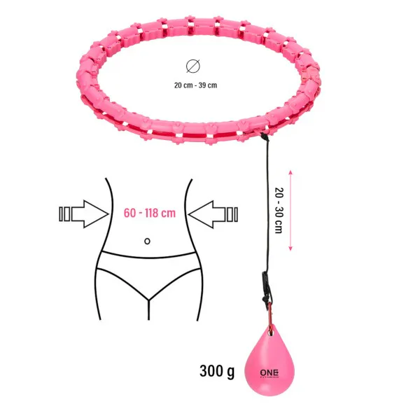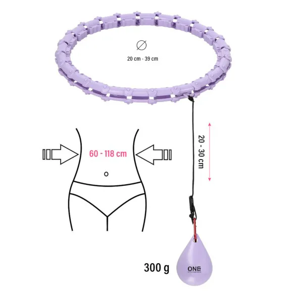 ONE Fitness OHA02 je hula hop obruč s nastavitelnou délkou, masážními výstupky a rotujícím závažím.