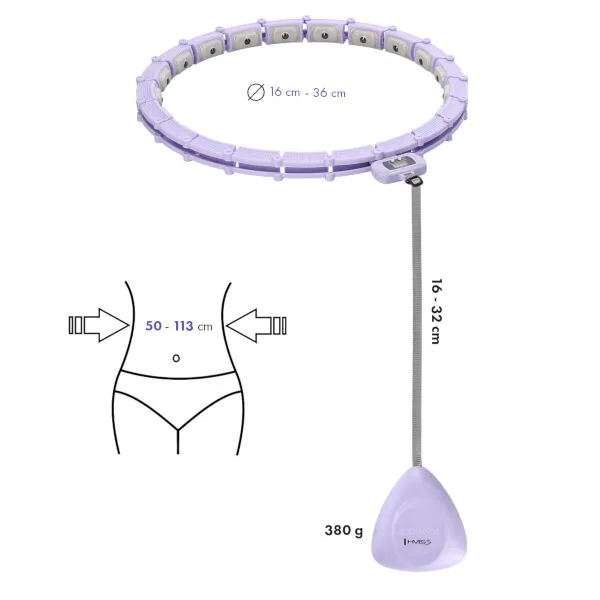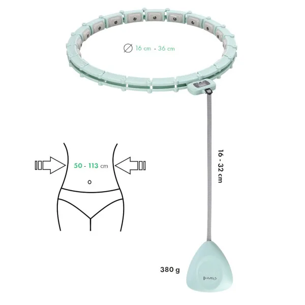 HMS HHM14 je hula hop obruč s nastavitelnou délkou, masážními magnetickými výstupky a rotujícím závažím.
