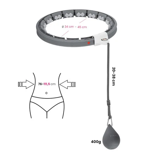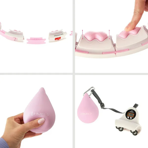 HMS HHW06 je hula hop obruč s nastavitelnou délkou, masážními výstupky, počítadlem a rotujícím závažím.