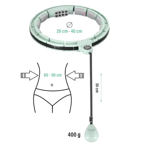 Délka obruče se nastaví podle obvodu pasu tak, aby byla dostatečně volná, ale zároveň aby nepadala přes boky. Model HHM13 je vhodný pro obvod pasu od 60-ti do 96-ti centimetrů. Po nastavení délky se do kolejnice vloží kotva se závažím a obruč se uzavře. Závaží se následně "vrhne" směrem, do kterého budeme kroutit boky a začneme trénink. Intensitu tréninku ovlivňuje rychlost, jakou kroutíme boky a délka provázku, na kterém je připevněno závaží.