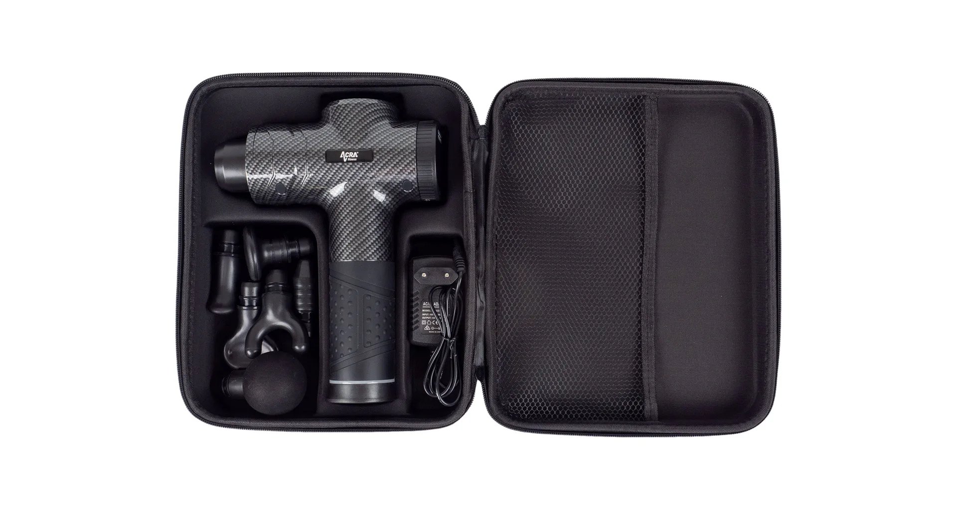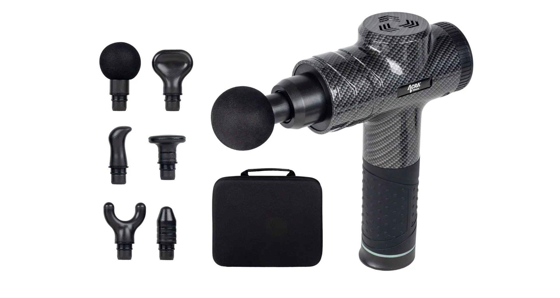 Bezdrátová masážní pistole Acra Fitness GUN s LED displejem a šesti vyměnitelnými hlavicemi, určená pro profesionální i amatérské použití. Vyrobena z pevného materiálu ABS s příjemnou saténovou strukturou, nabízí dokonalou kombinaci výkonu a komfortu.