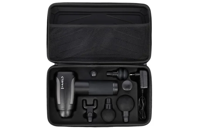 Masážní pistole HMS PDM3125 je ideálním nástrojem pro hloubkovou masáž svalů celého těla. Tento masážní přístroj najde uplatnění jak u sportovců, tak u lidí se sedavým životním stylem, nebo například u fyzioterapeutů. PDM3125 obdržíte v elegantním kufříku černé barvy spolu s šesti nástavci, napájecím adaptérem a návodem k použití.