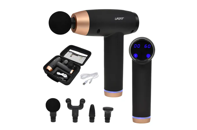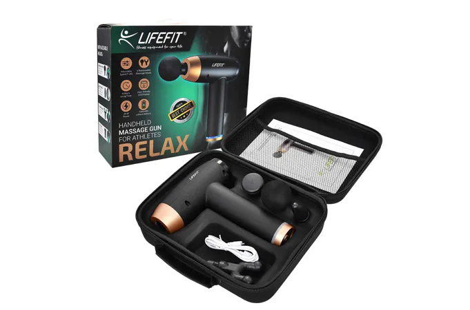 Masážní pistole LIFEFIT RELAX se dodává s praktickém kufříku černé barvy.