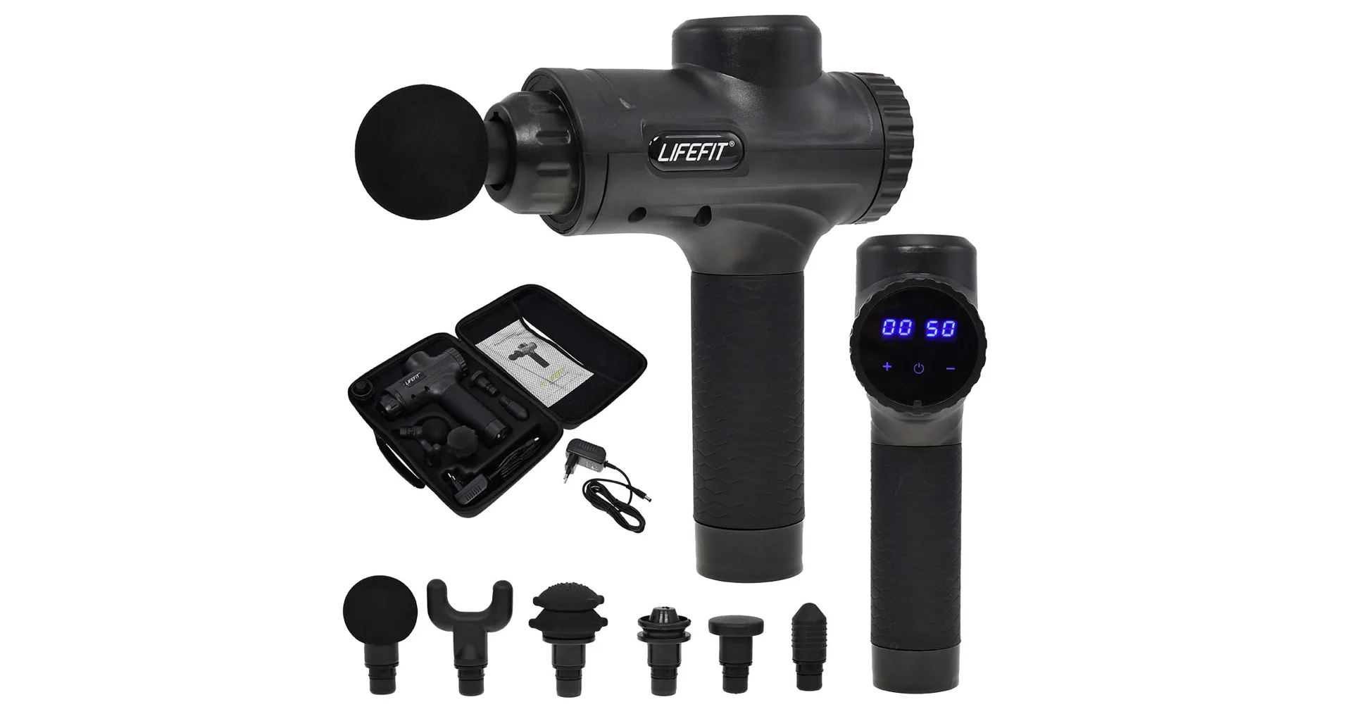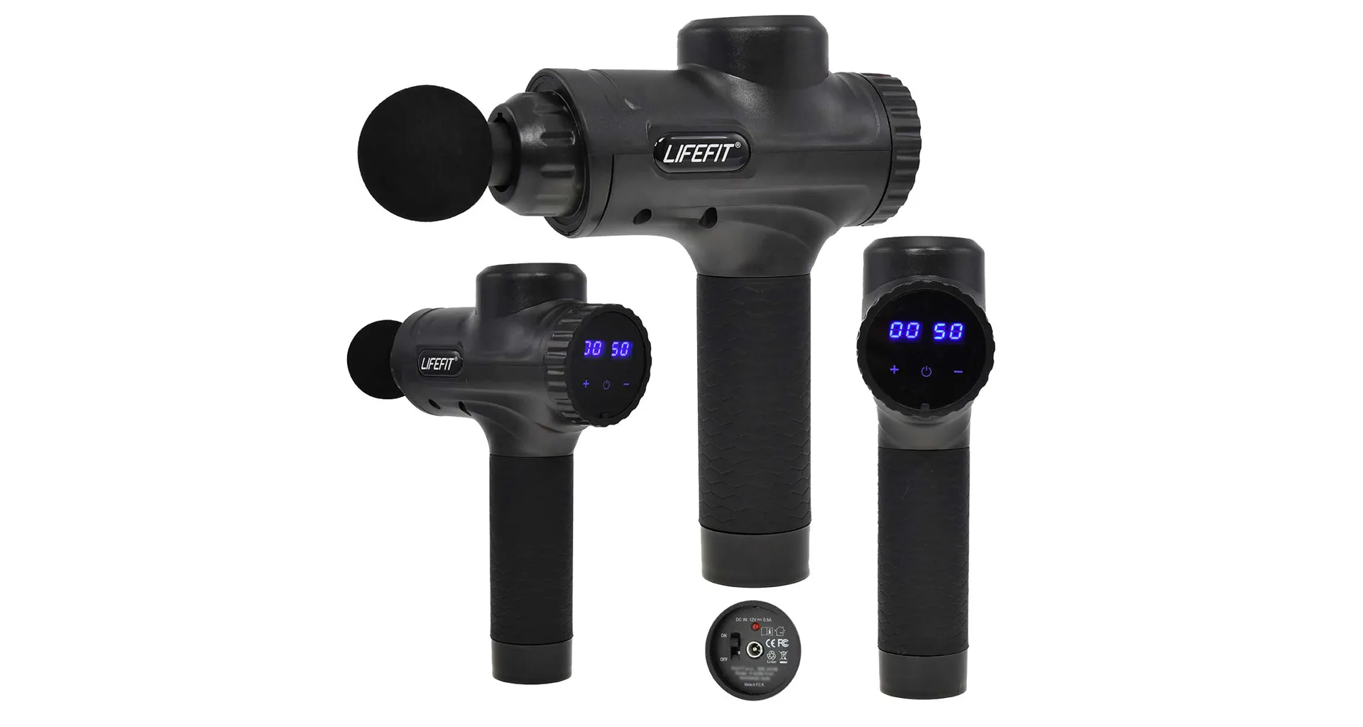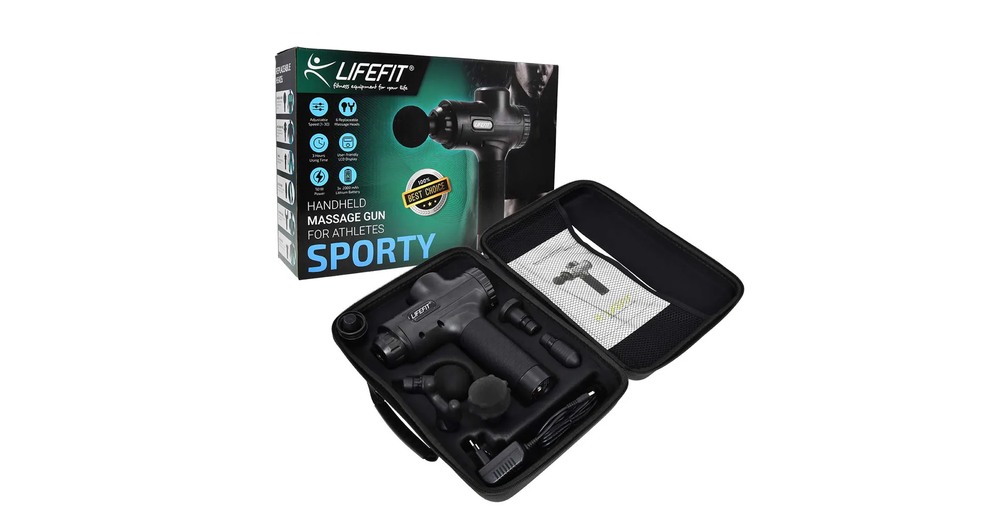 Masážní pistole LIFEFIT RELAX se dodává s praktickém kufříku černé barvy.