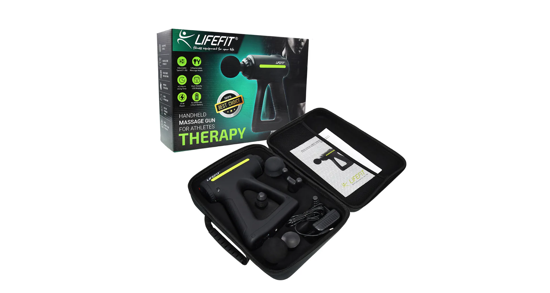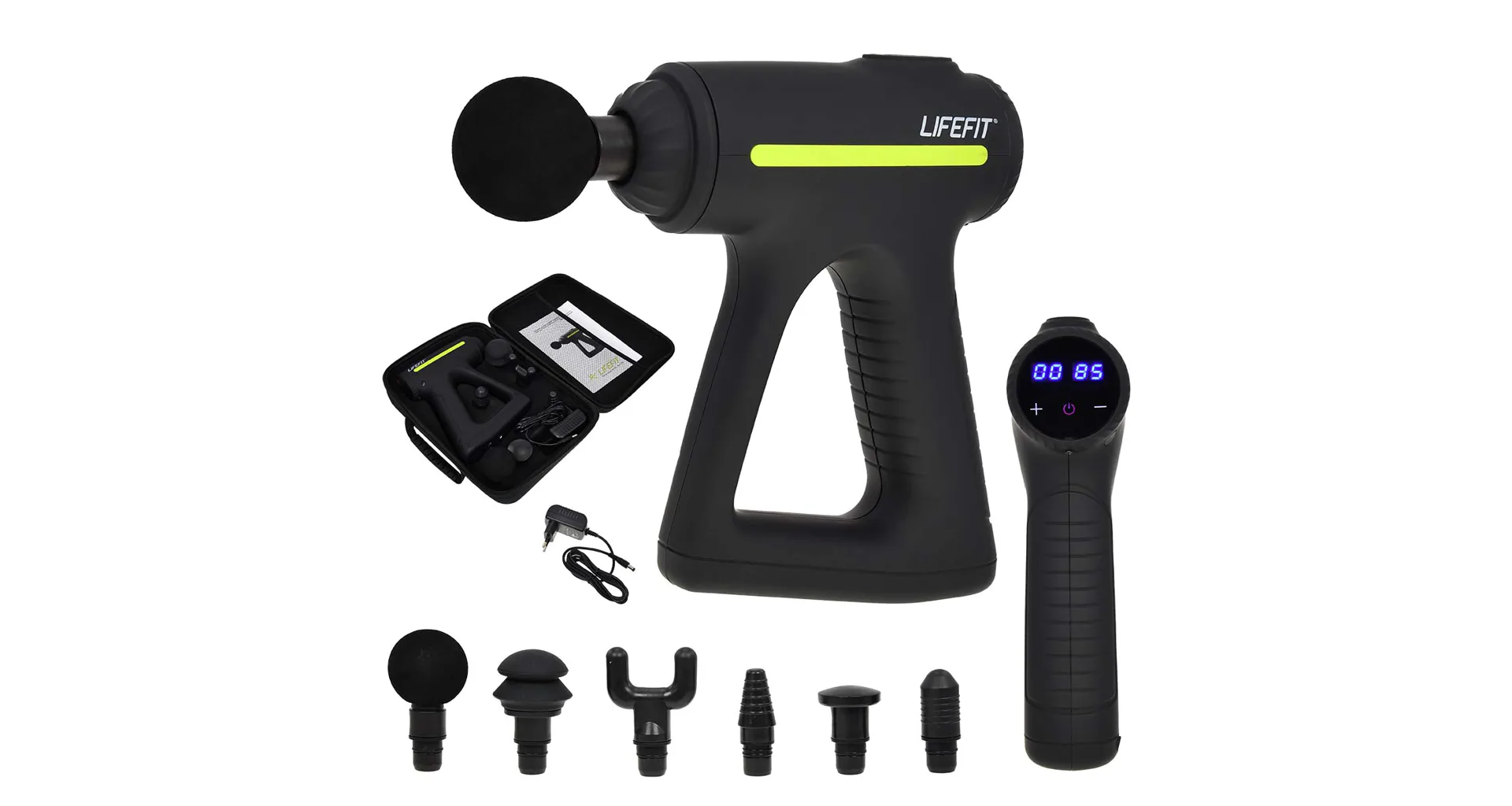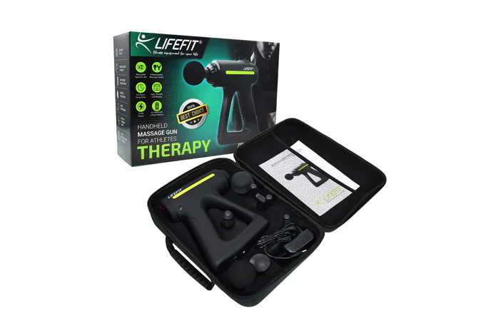 Masážní pistole LIFEFIT RELAX se dodává s praktickém kufříku černé barvy.