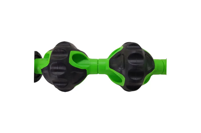 Masážní válec TUNTURI tvoří 4 masážní kolečka, která umožní lepší uvolnění svalů a prokrvení masírovaných oblastí. Je také vynikajícím nástrojem pro snížení bolesti svalů či kloubů a pro celkovou stimulaci krevního a lymfatického oběhu, a to prakticky na kterémkoliv místě na těle. Díky dvěma dostatečně dlouhým madlům se pohodlně drží. Velmi odolný použitý materiál je zárukou dlouhodobé výdrže.