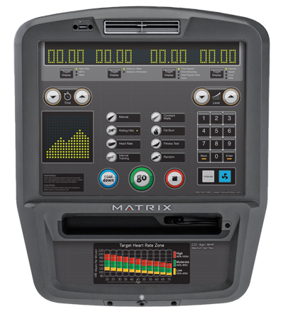 Americký výrobce MATRIX patří již řadu let k absolutní špičce v produkci fitness vybavení pro komerční účely a fitness centra. Stroji této značky jsou vybavená slavná fit centra GOLDS GYM a stovky profesionálních a klubových fit center po celém světě.Matrix U5x, je vybaven patentovaným brzdovým systémem JID brushless generator, který nepotřebuje externí zdroj napájení. Minimální výkon pro napájení je 12W při minimálních 25 otáčkách za minutu. Stroj je však možné připojit do elektrické sítě, předchozí požadované hodnoty pro provoz potom nejsou nutné. Robustní rámová konstrukce ze značkové oceli i ostatní konstrukční prvky, průmyslového charakteru, umožňují využívat toto fitness zařízení v komerčním provozu. Tedy tam, kde je jeho frekvence užívání vysoká. Počítač je vybavený Dot-matrix LED (bodový LED) displayem a nabízí jednoduché ovládání i řadu motivačních programů pro individuální, či jiné potřeby. Komfort doplňuje integrovaný ventilátor, komunikaci s PC obstará bezdrátový vysílač.