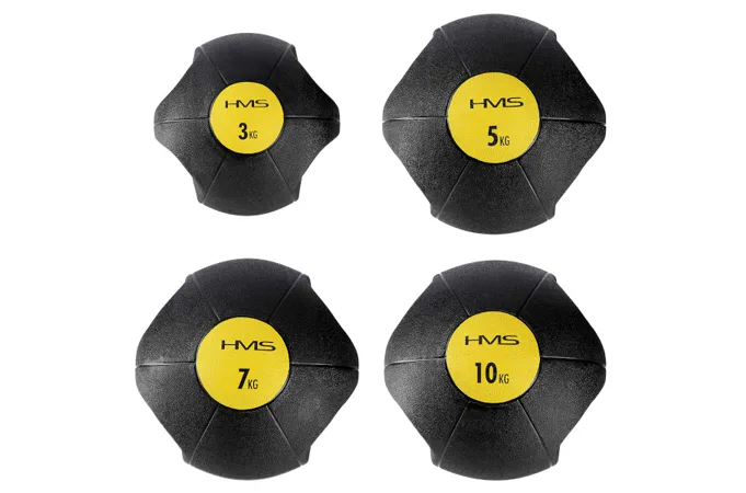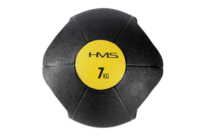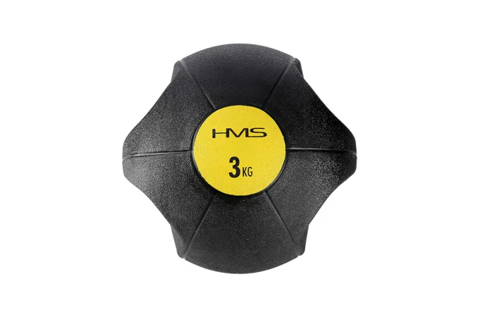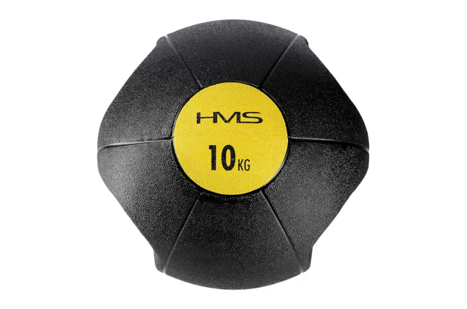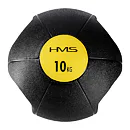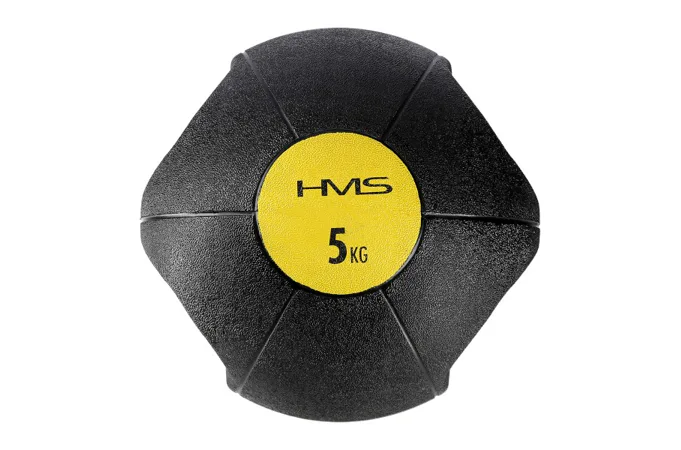 Medicineball HMS NKU je vyroben z hrubé a pevné gumy vyplněné pískem. Díky úchytům jde o kombinaci medicimbalu a činky.