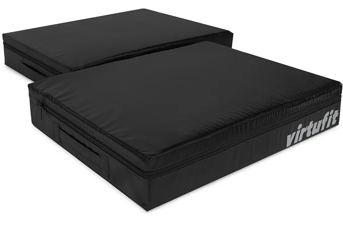 Měkčené dopady pod činku VIRTUFIT Drop Pad Set navíc umožňují trénink z vyvýšené pozice, např. v olympijském vzpírání nebo silovém trojboji, nebo i při pohybových omezeních, jsou tyto podložky praktickou alternativou dřevěných bloků.