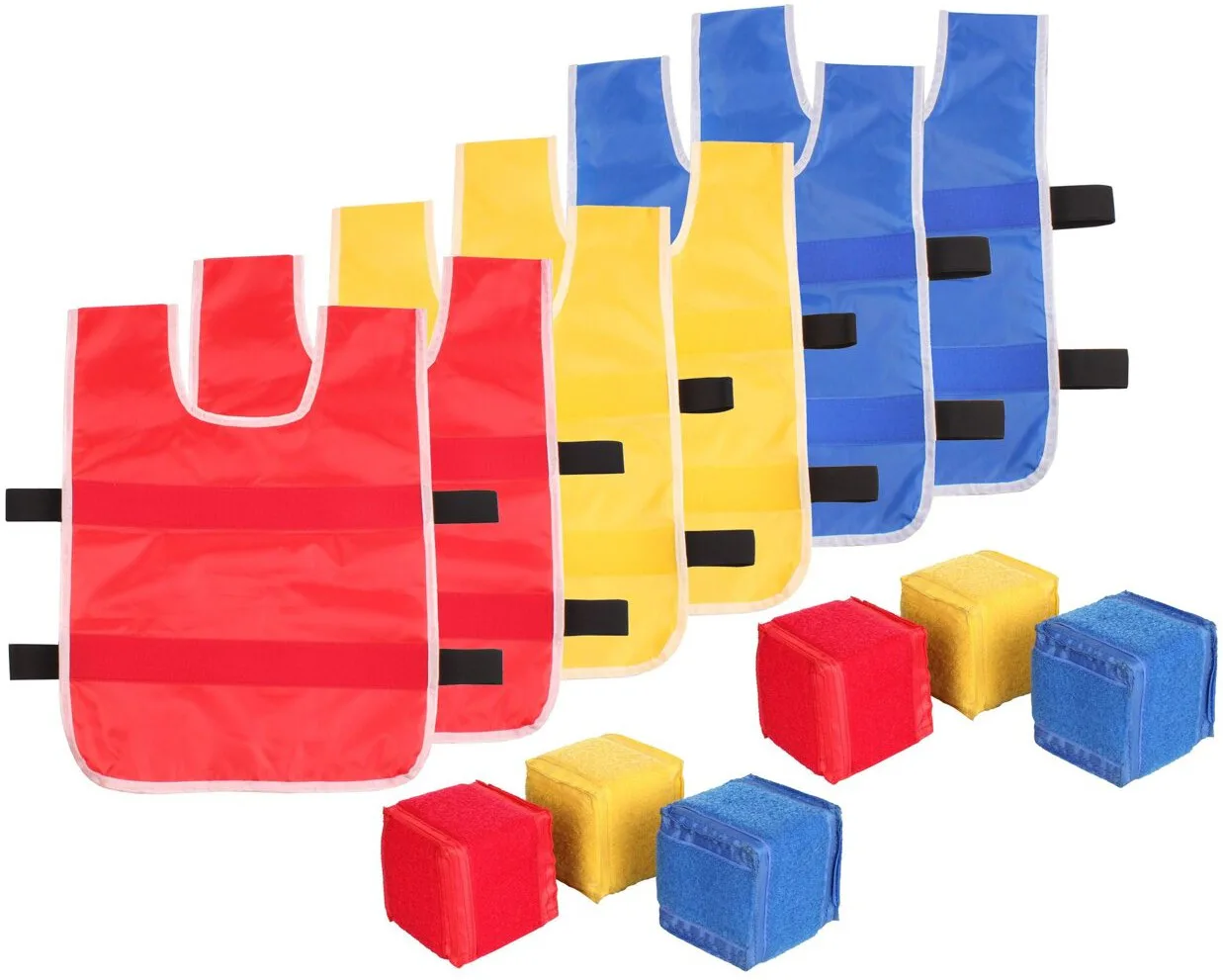 Samolepící vesty Merco Sticky Vests je nová týmová hra pro 2 - 6 hráčů, při které si užijí zábavu děti i dospělí. Hra je založená na klasické vybíjené. Součástí balení je šest barevných vest a šest "vybíjecích" kostek. Hrajte každý proti každému či ve dvoučlenných týmech. Vesty mají vepředu dva suché zipy, do kterých se musíte trefit a tím vyřadit protivníka. Pokud se kostka neudrží, hráč zůstává v poli. Díky sadě Merco Sticky Vests dopřejete vašim dětem spoustu zdravého pohybu zábavnou formou.