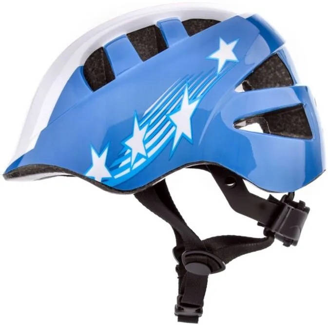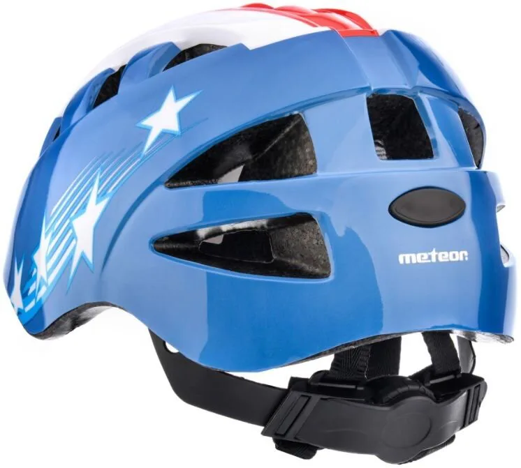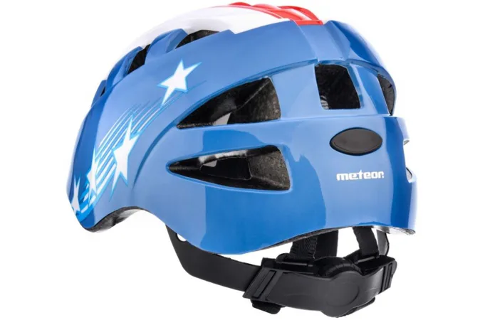 Dětská cyklistická přilba Meteor KS08 Captain je vhodná pro malé cyklisty, skateboardisty nebo kolečkové bruslaře. Její zadní část byla prodloužena pro maximální úroveň ochrany při pádu na záda. Konstrukci helmy tvoří vrchní skořepina z PCV materiálu a vnitřní EPS polystyren pro absorpci nárazů.