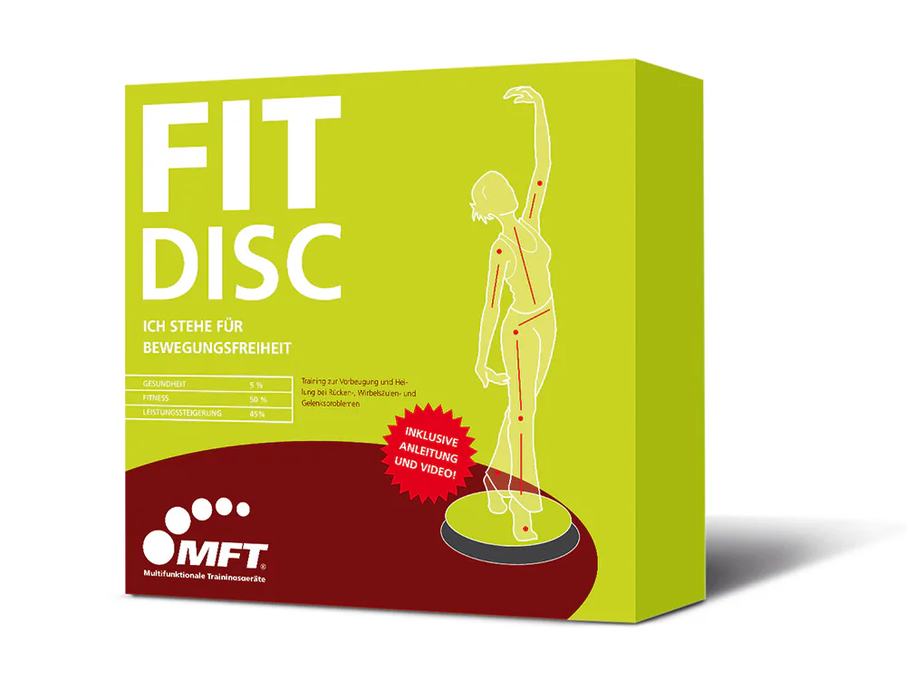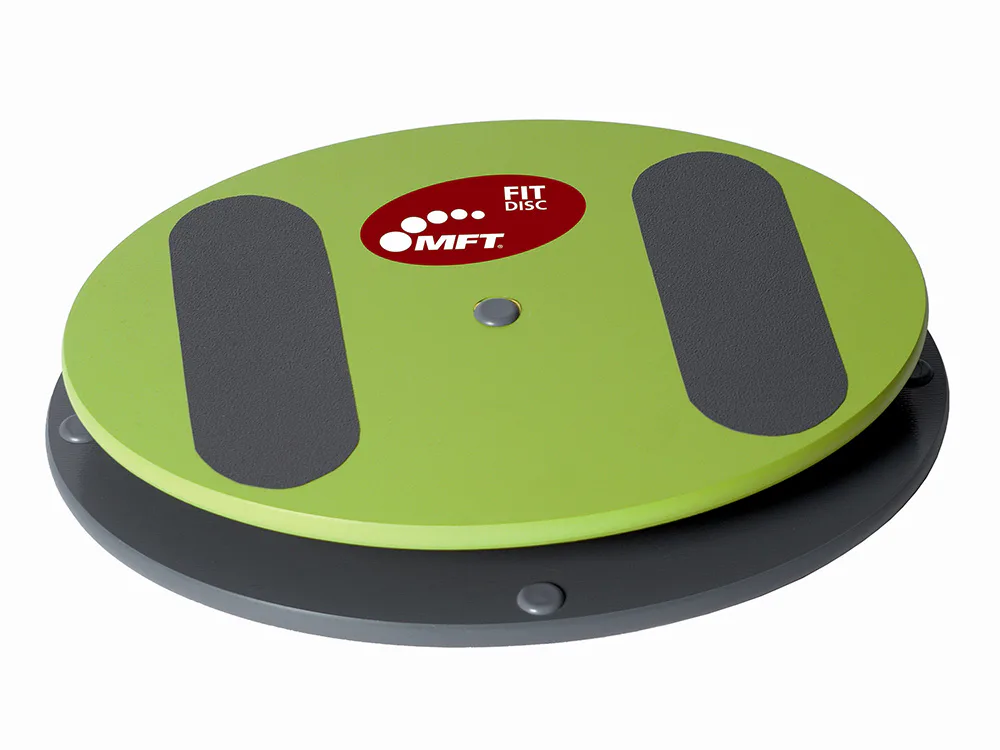 FIT DISC je balanční deska elipsovitého tvaru na pevném základě. Horní nášlapná část se spodní částí je spojena speciálním gumovým blokem, který neumožňuje plnou rotaci. Cvičení na této balanční pomůcce tak patří mezi méně náročné. Fit disc je vhodný i pro rehabilitaci. Jeho nosnost je 120 kg.