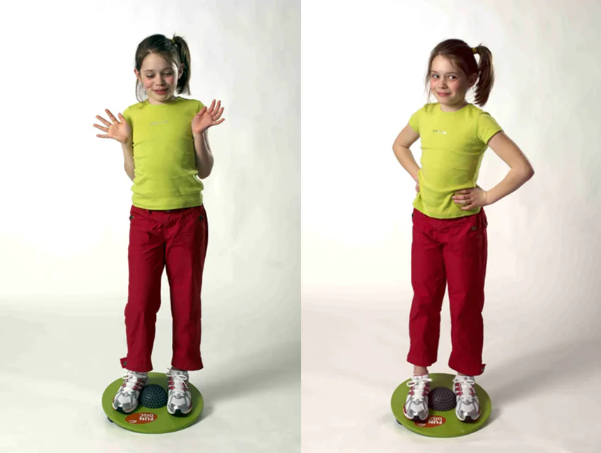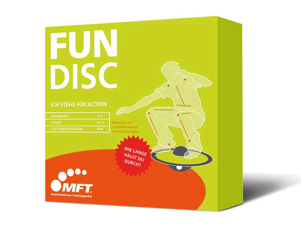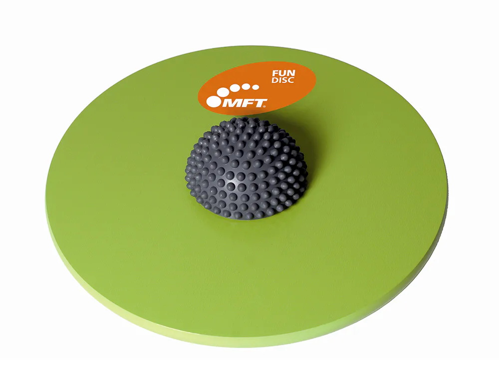 MFT Fun Disc je určen pro děti a začátečníky, napomáhá zlepšení jemné motoriky, stabilizace a koordinačních schopností pohybového aparátu. Tuto balanční desku lze používat oboustranně. V poloze, kdy je ve spodní části šedá úseč koule (ježek), je cvičení náročnější a umožňuje částečnou rotaci. V opačné poloze je cvičení méně náročné, protože rotace je zcela eliminována. Nosnost podložky je 120 kg.