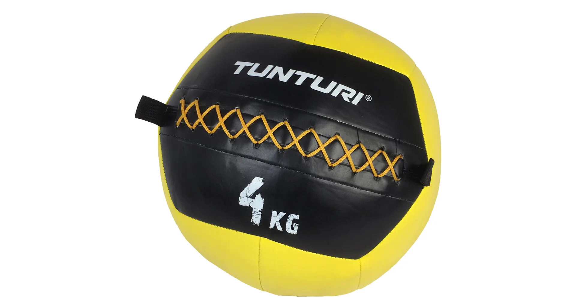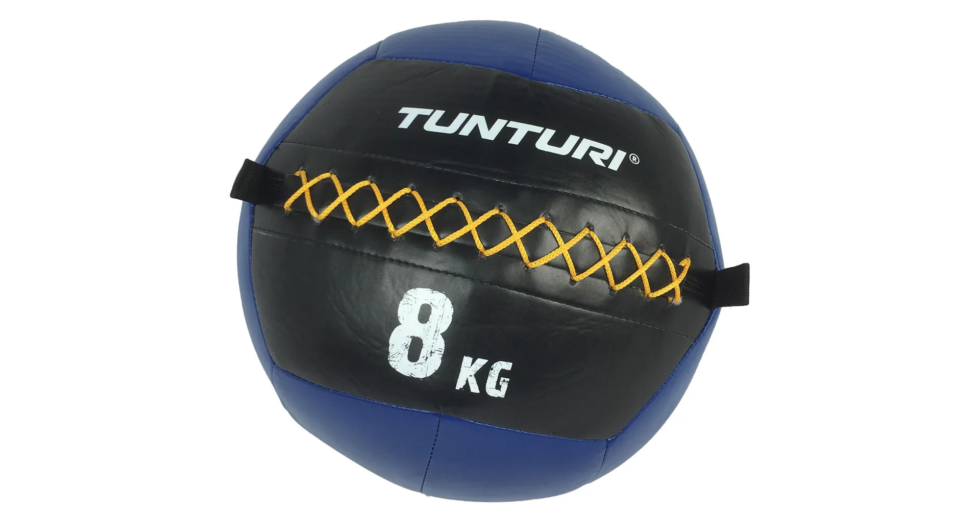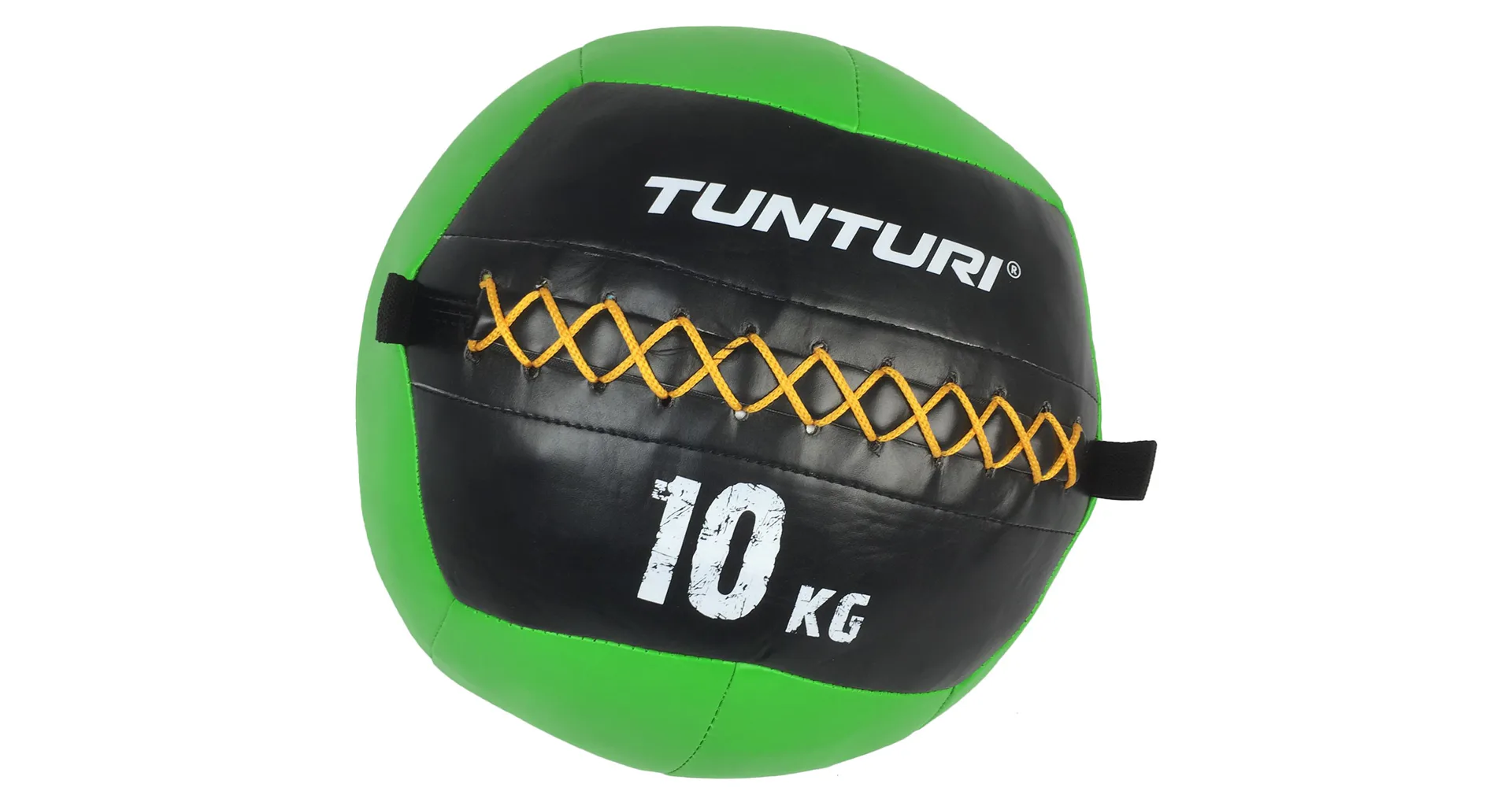 TUNTURI míč pro funkční trénink WALL BALL je kombinací klasického medicinbalu a speciálně upraveného míče pro posilování. Posilovací míč je vyroben ze syntetické kůže, která je odolná proti vlhkosti. Díky tomu lze provádět různá cvičení jak v uzavřeném prostředí, tak ve venkovním prostředí. Konstrukce a provedení míče zajišťuje, aby zůstal tvarově stejný, stabilní a vyvážený i po několikanásobných nárazech či dopadech. Oka na straně umožňují připojení lana nebo gumy, díky čemuž získává míč nový rozměr. WALL BALL slouží k zvyšování fyzické kondice, nabírání svalové hmoty nebo k celkovému posilování vlastní hmotností. Taktéž může být využíván jako pomůcka pro rehabilitaci.