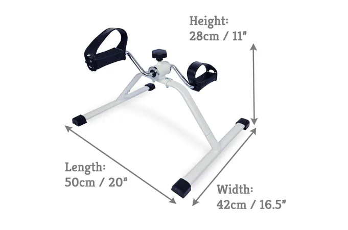 Dobrý den, pedály minirotopedu TUNTURI mají polohovatelnou klipsnu přes nohu ve dvou pozicích pro větší a menší obuv. Upřímně bych ale zvážil spíše nákup minirotopedu se setrvačníkem jako je například TUNTURI CARDIO FIT M30, nebo ještě lépe M35, které mají podstatně komfortnější, plynulejší chod a díky vyšší váze i stabilitu (drží na místě).