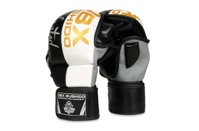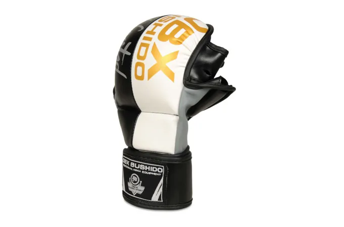 MMA rukavice DBX BUSHIDO ARM-2011b vyrobeny z kvalitní syntetické kůže. Výplní rukavic je tvrzená pěna, která skvěle tlumí údery a zaručuje uživateli každodenní bezproblémové využítí jak při tréninku na boxovacím pytli tak se sparing partnerem. Tento model je vhodný pro MMA, Krav Maga a trénink Boxu nebo Kickboxu. Model ARM-2011 je vyroben ze syntetické kůže se zvýšenými pevnostními parametry, takže jsou velice odolné a snadno se čistí. Vnitřní strana rukavice je lemována hladkým materiálem s dostatečným větráním. U rukavic je prodloužený pásek na suchý zip, který umožňuje dvojité vinutí okolo zápěstí, to zaručuje odpovídající výztuhu zápěstí a zabraňuje jeho zranění.